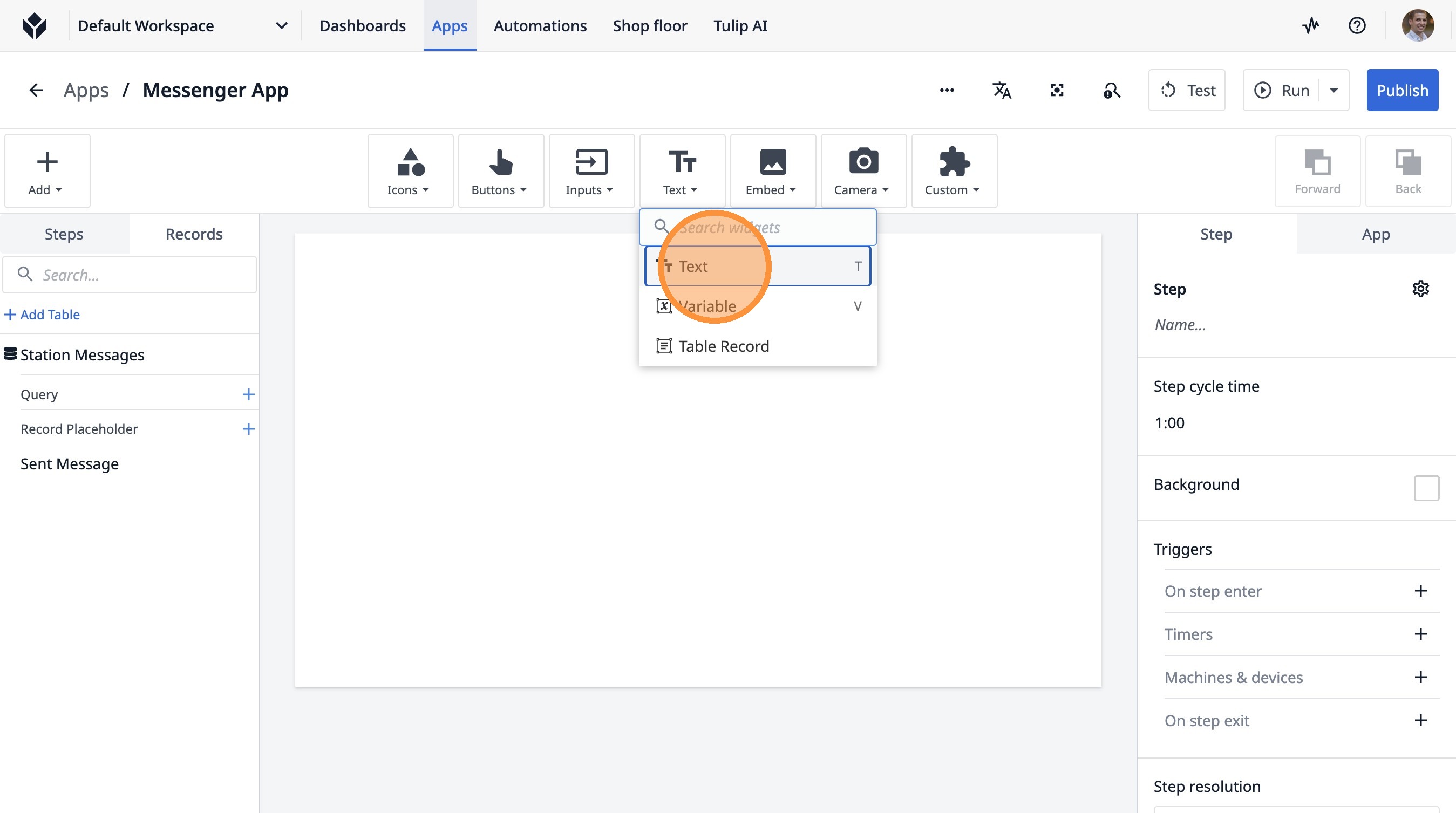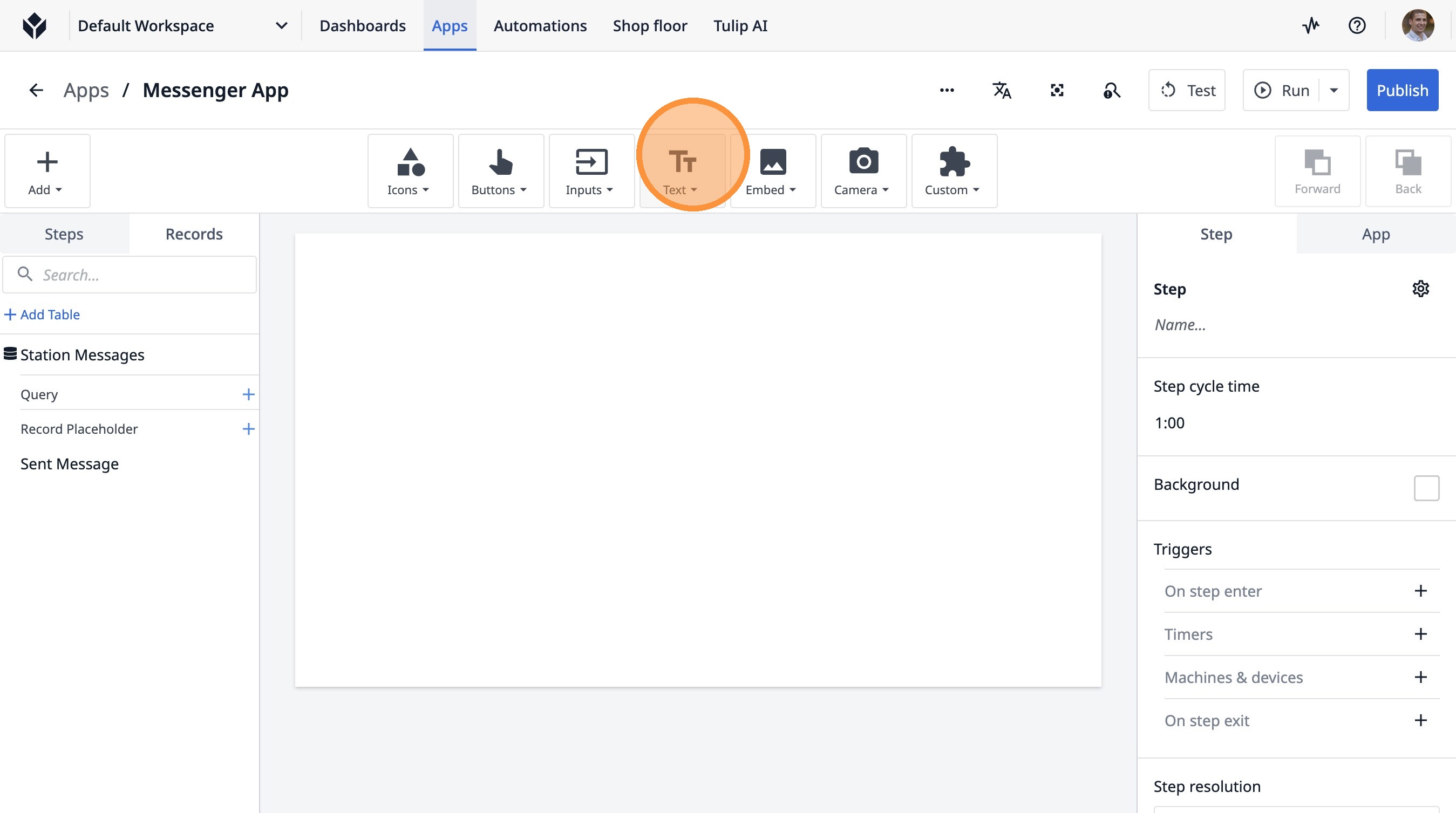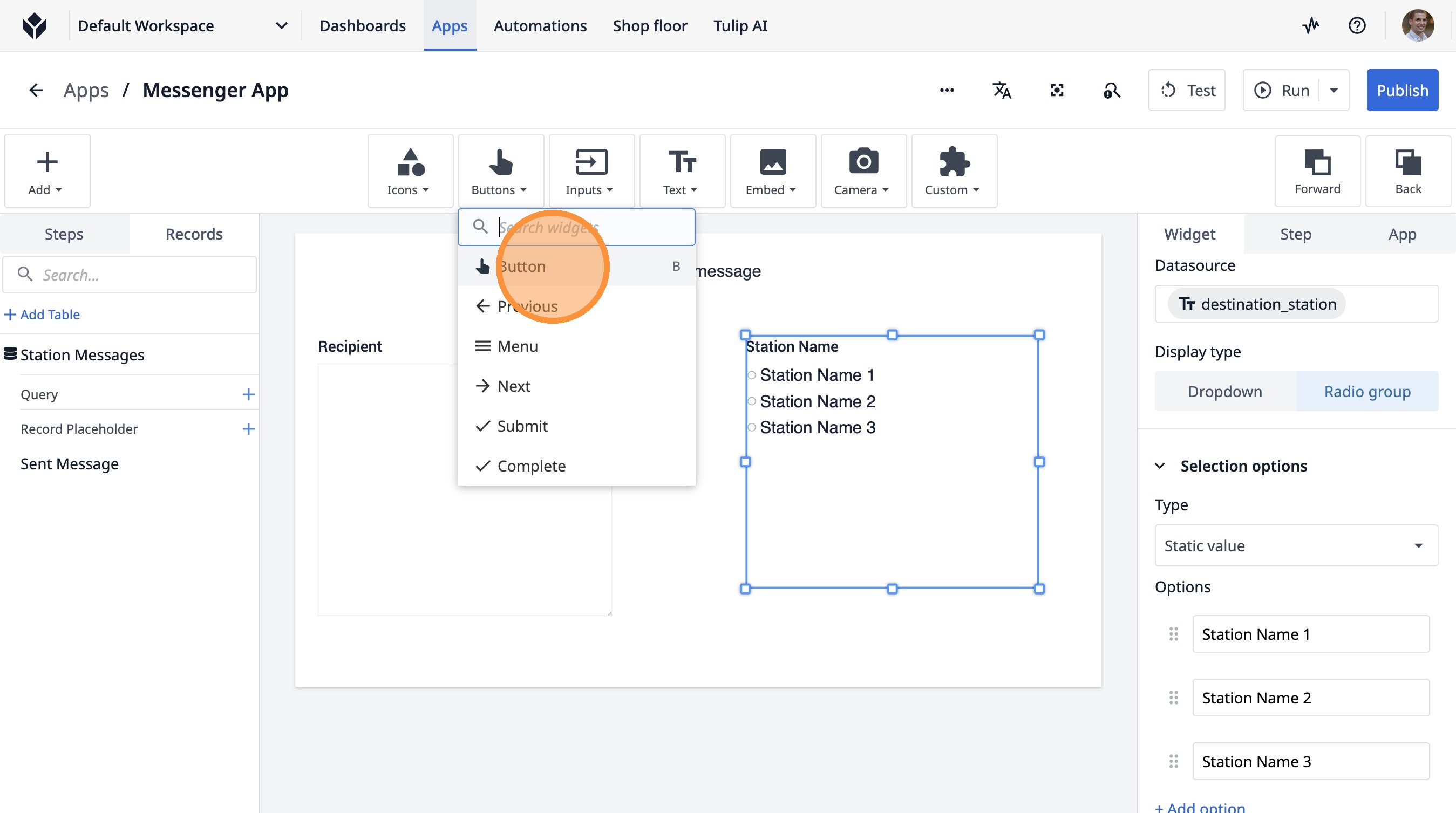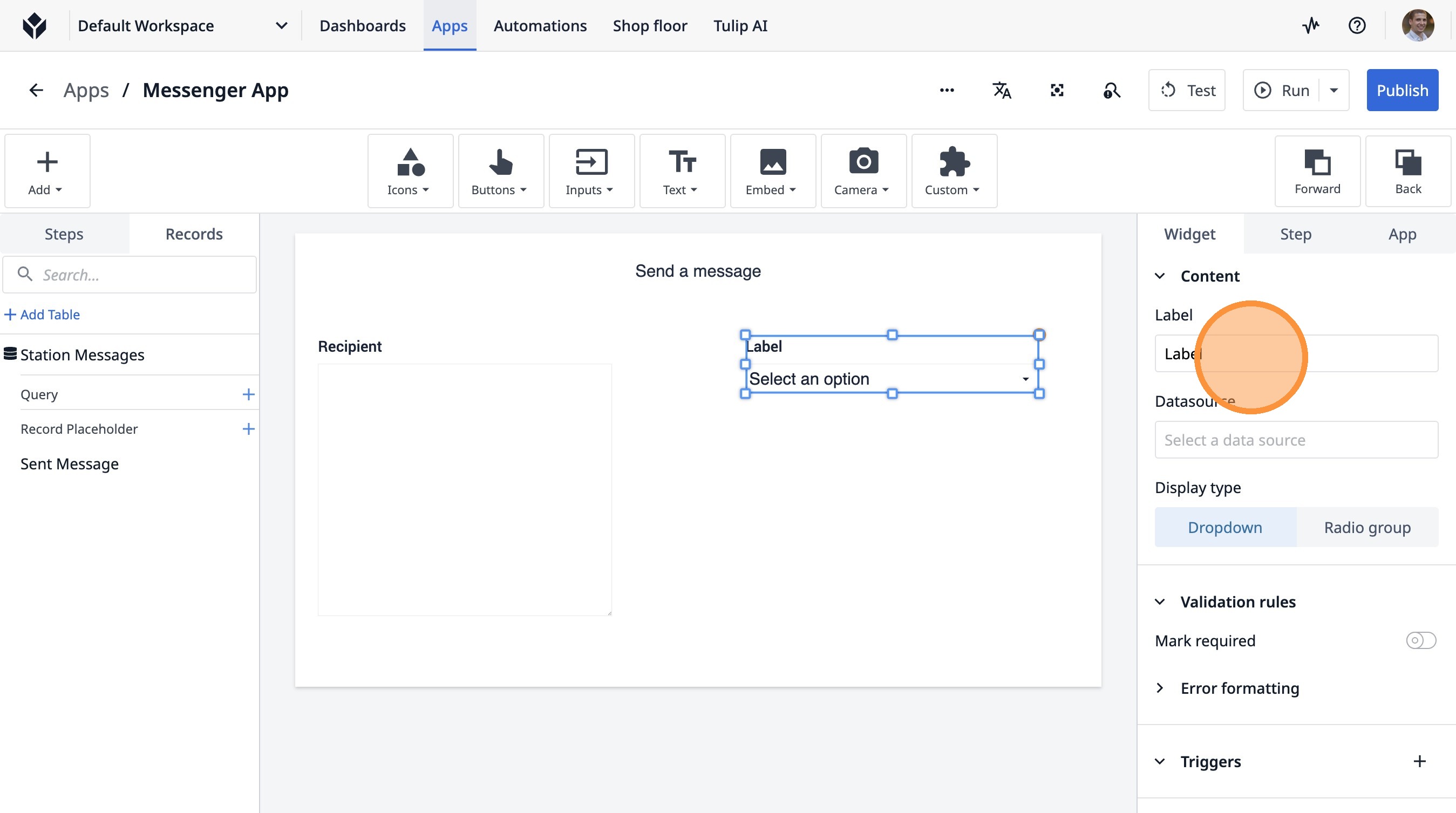 Learn how to build a Tulip application that allows users to send messages between stations. This guide covers setting up the app, configuring message records, and implementing the send functionality.