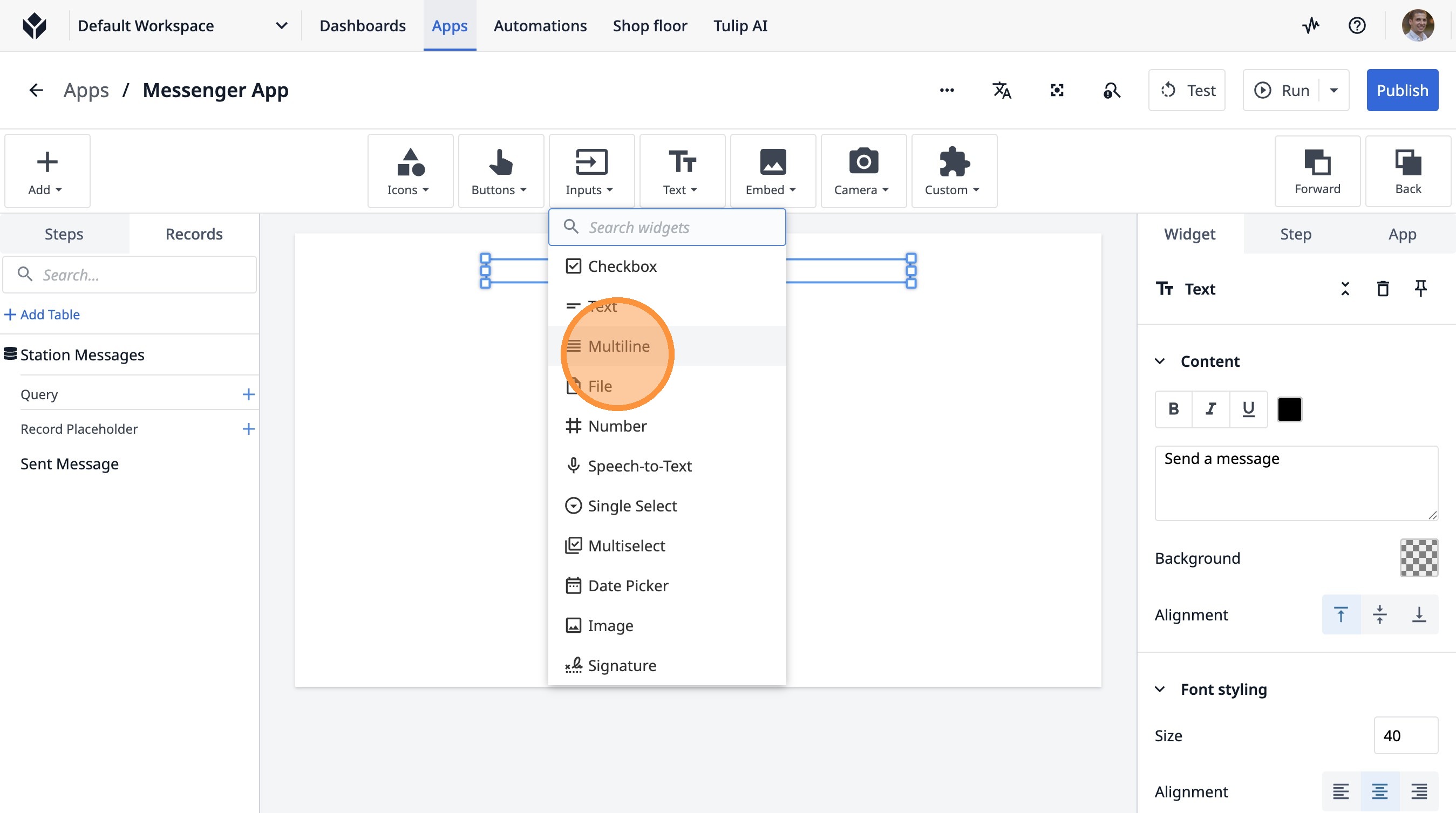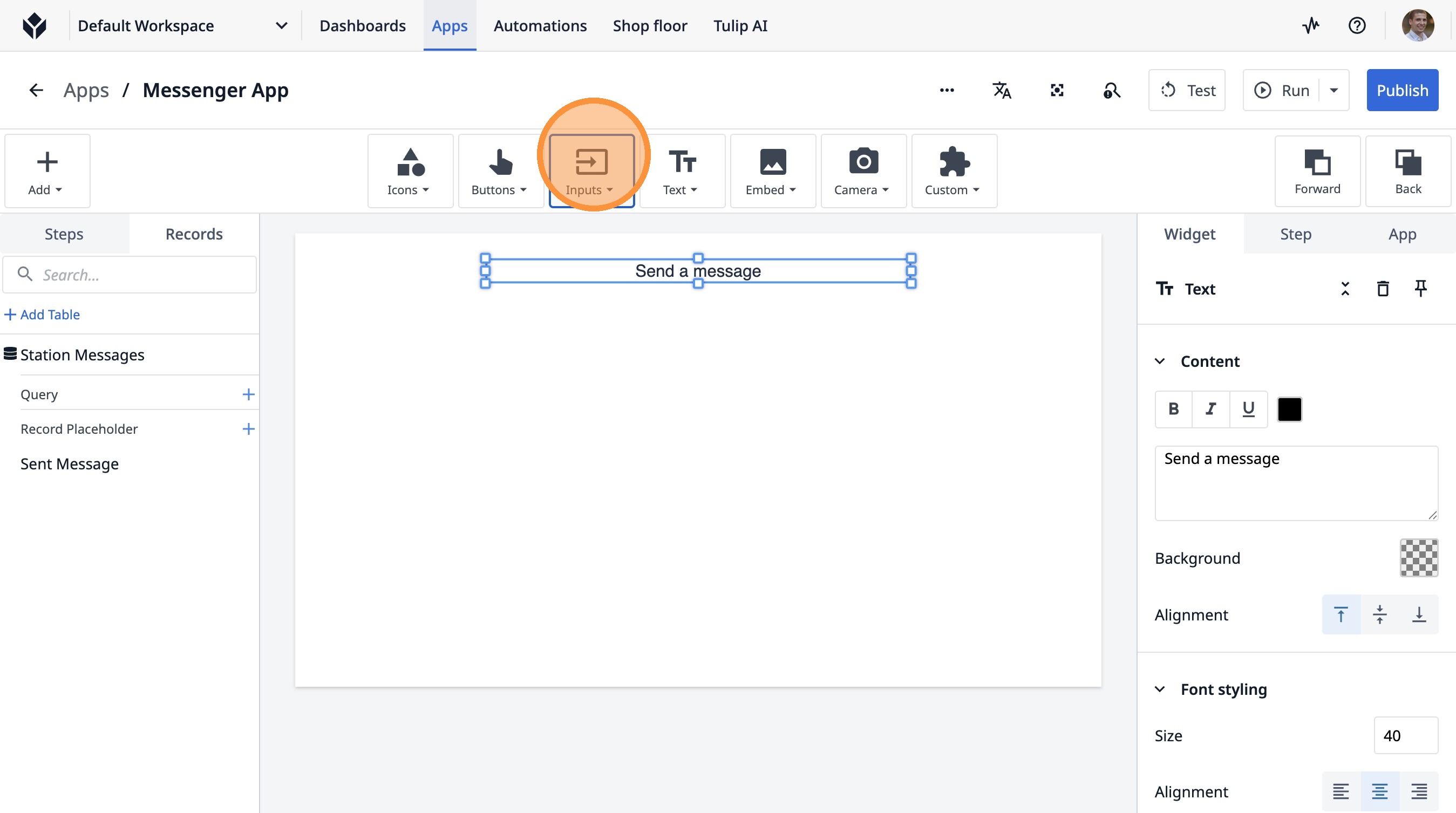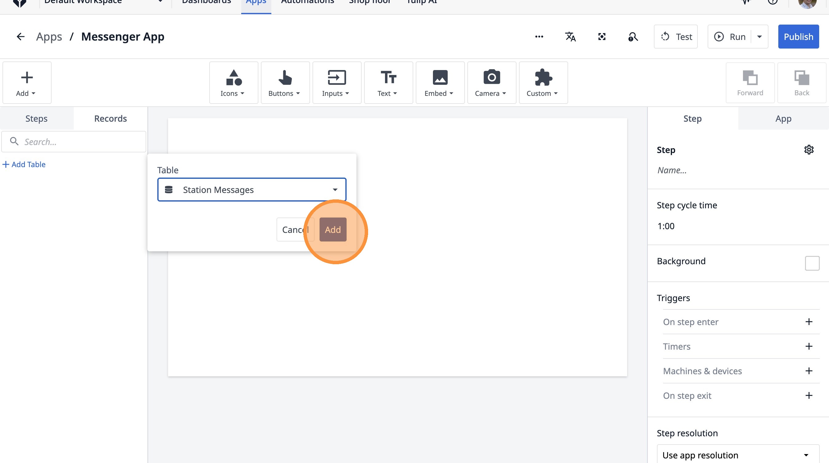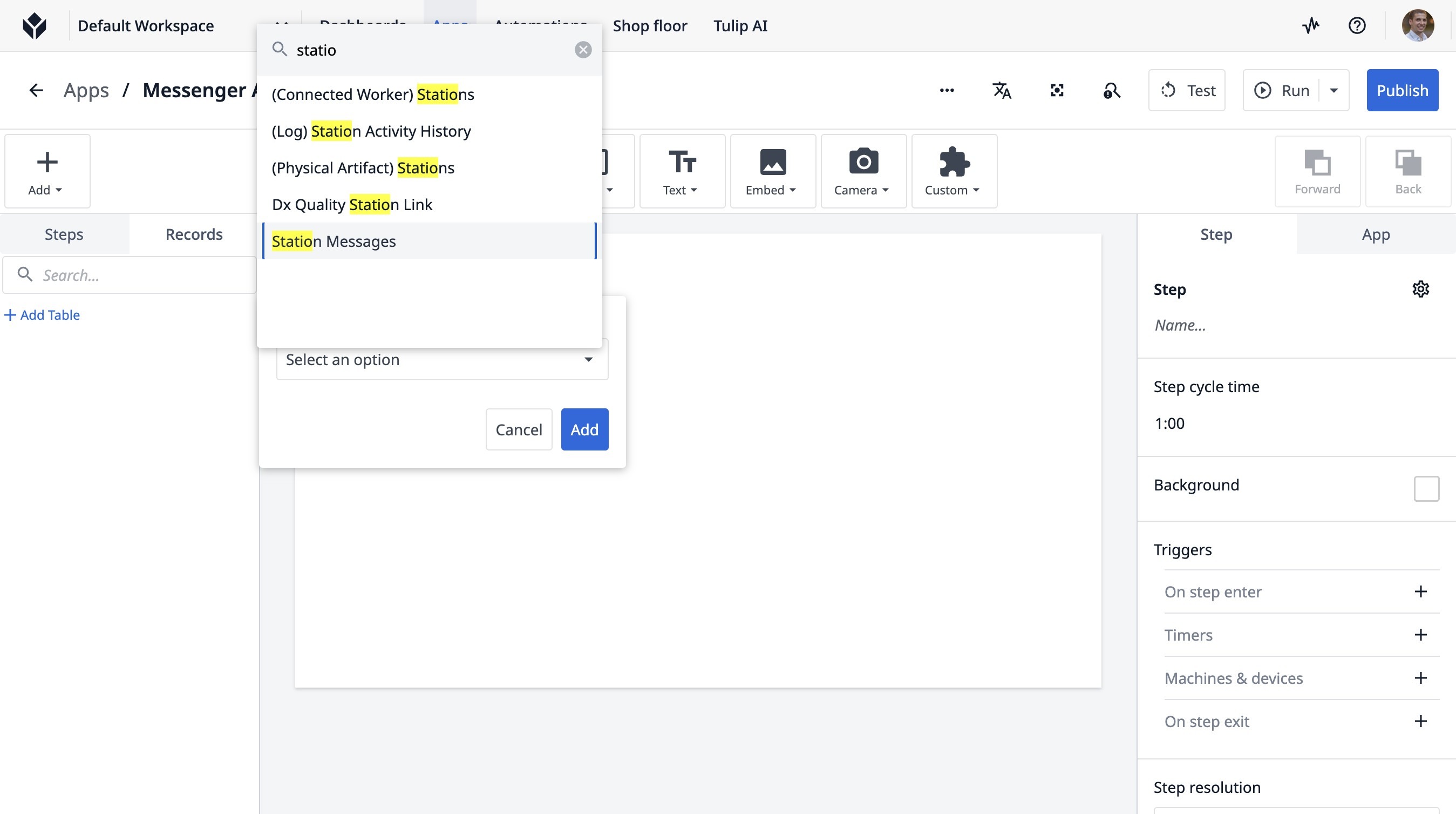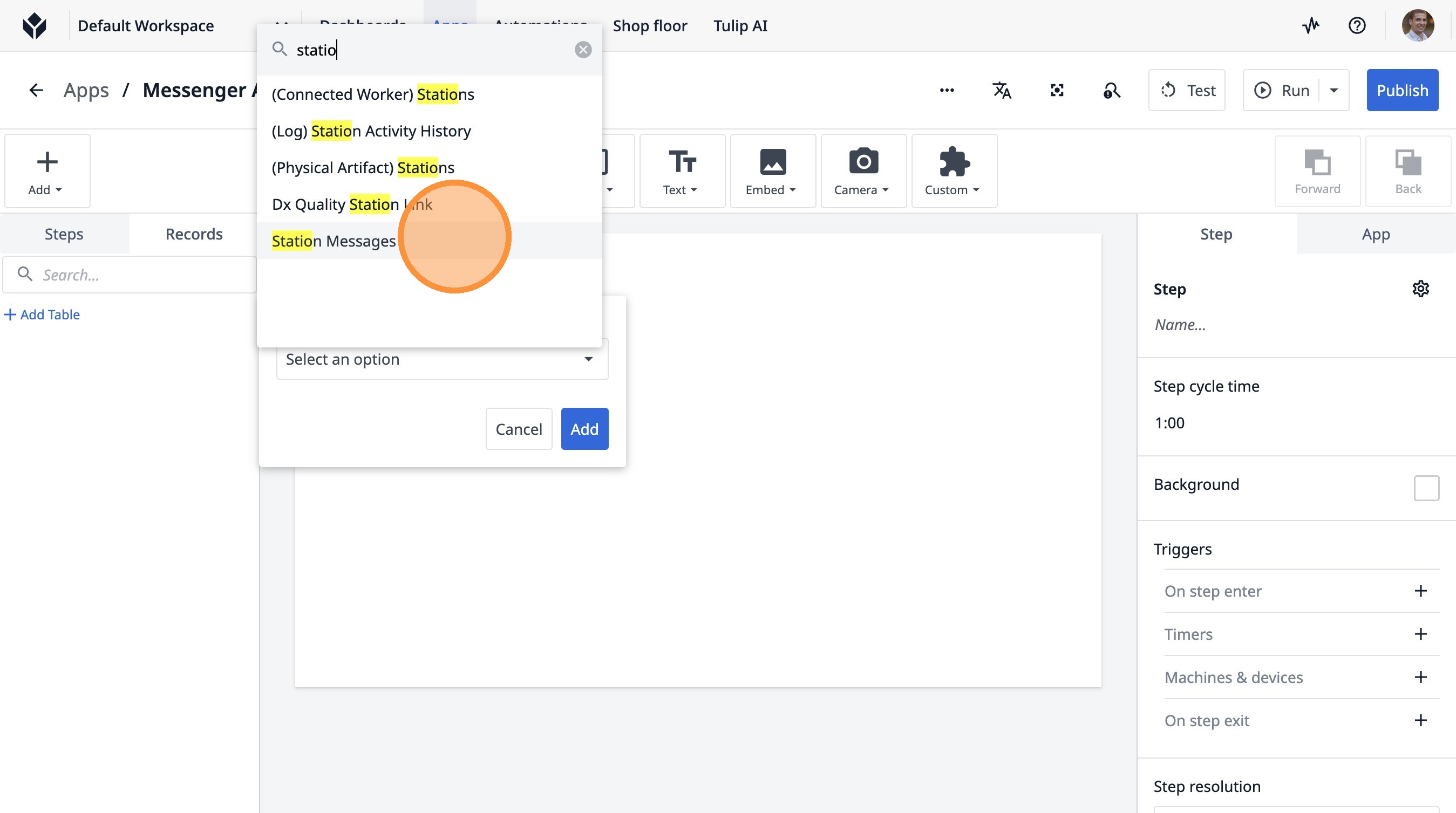 Learn how to build a Tulip application that allows users to send messages between stations. This guide covers setting up the app, configuring message records, and implementing the send functionality.