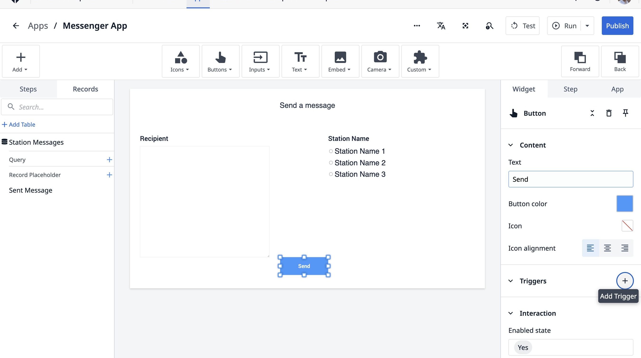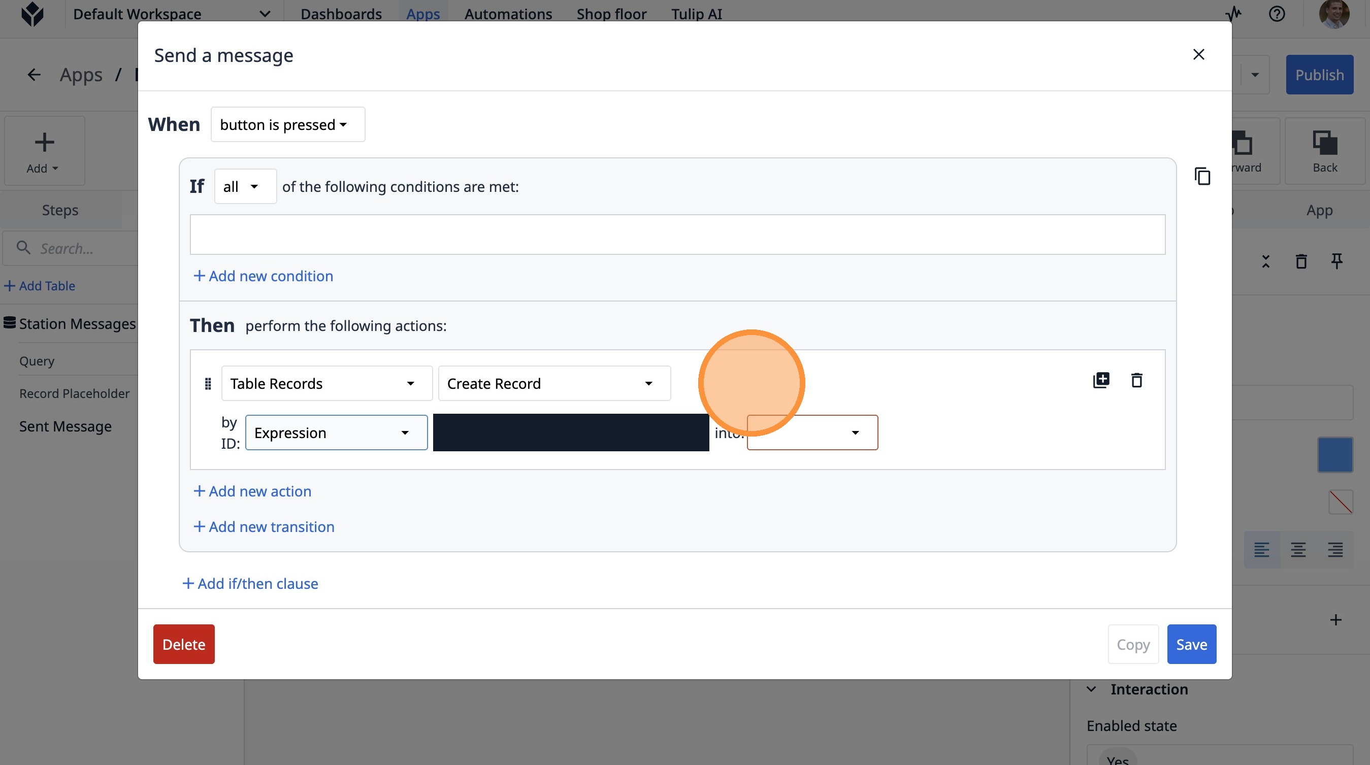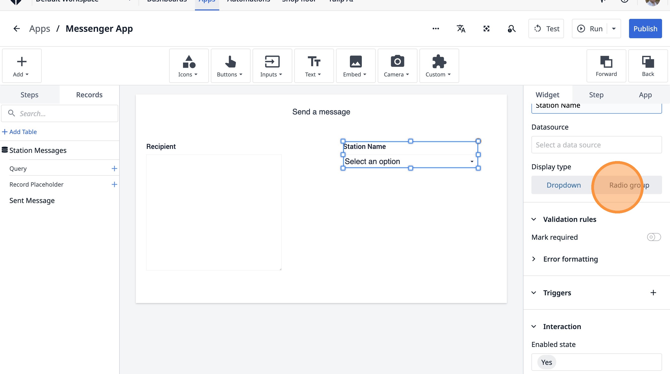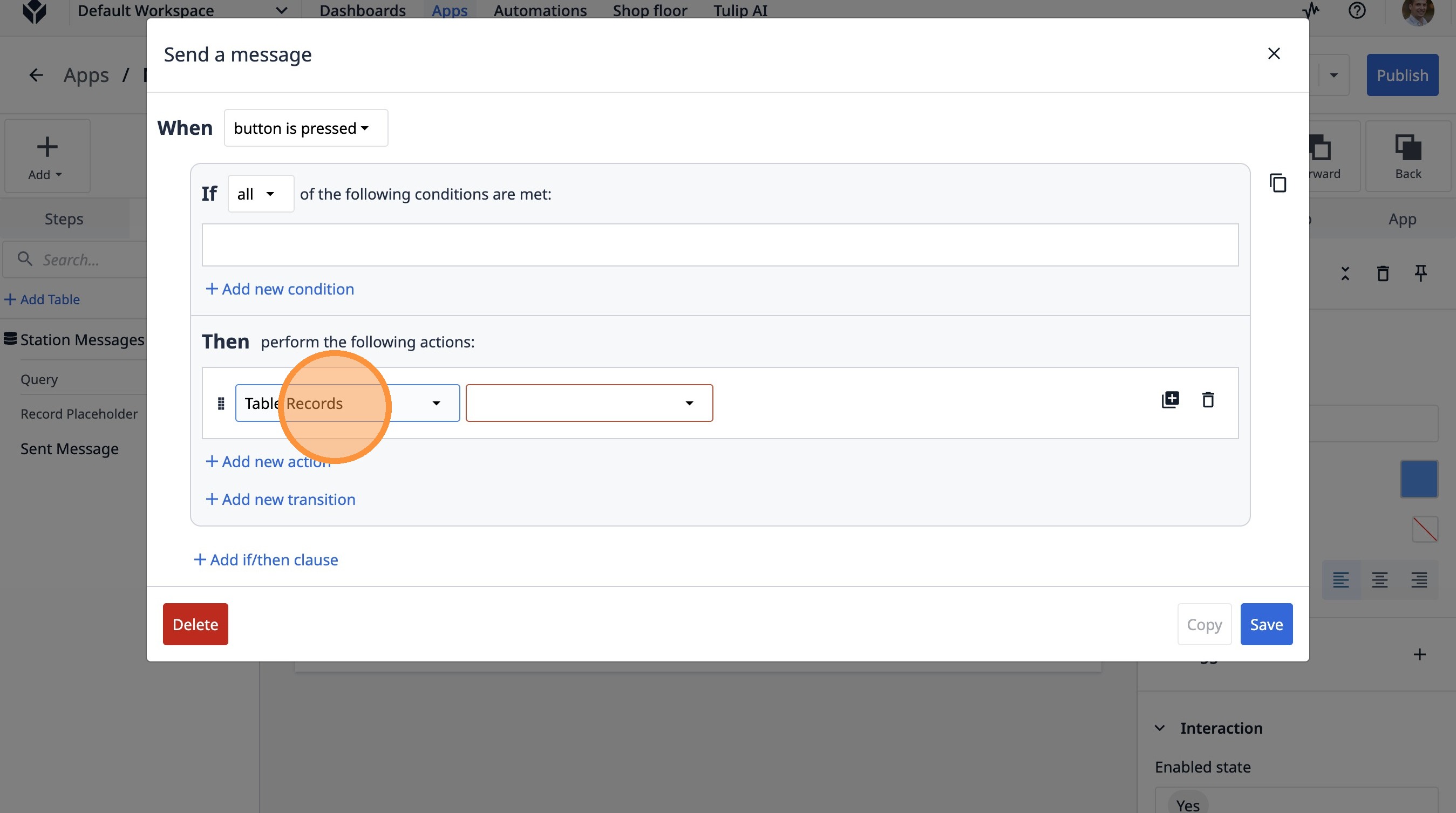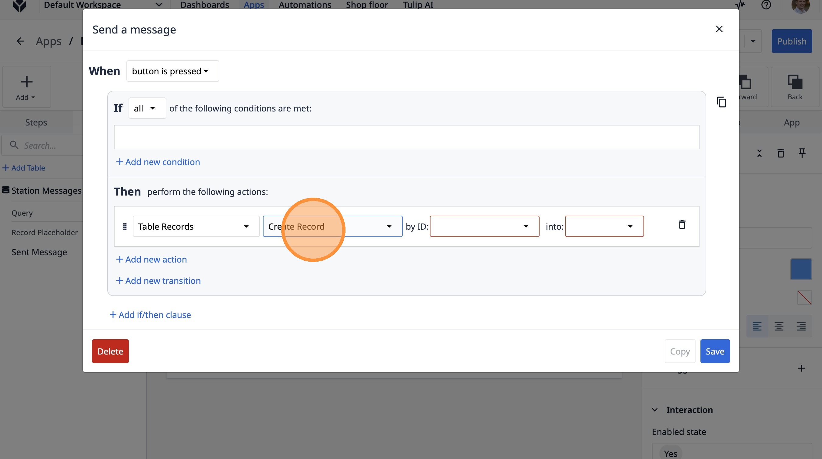 Learn how to build a Tulip application that allows users to send messages between stations. This guide covers setting up the app, configuring message records, and implementing the send functionality.