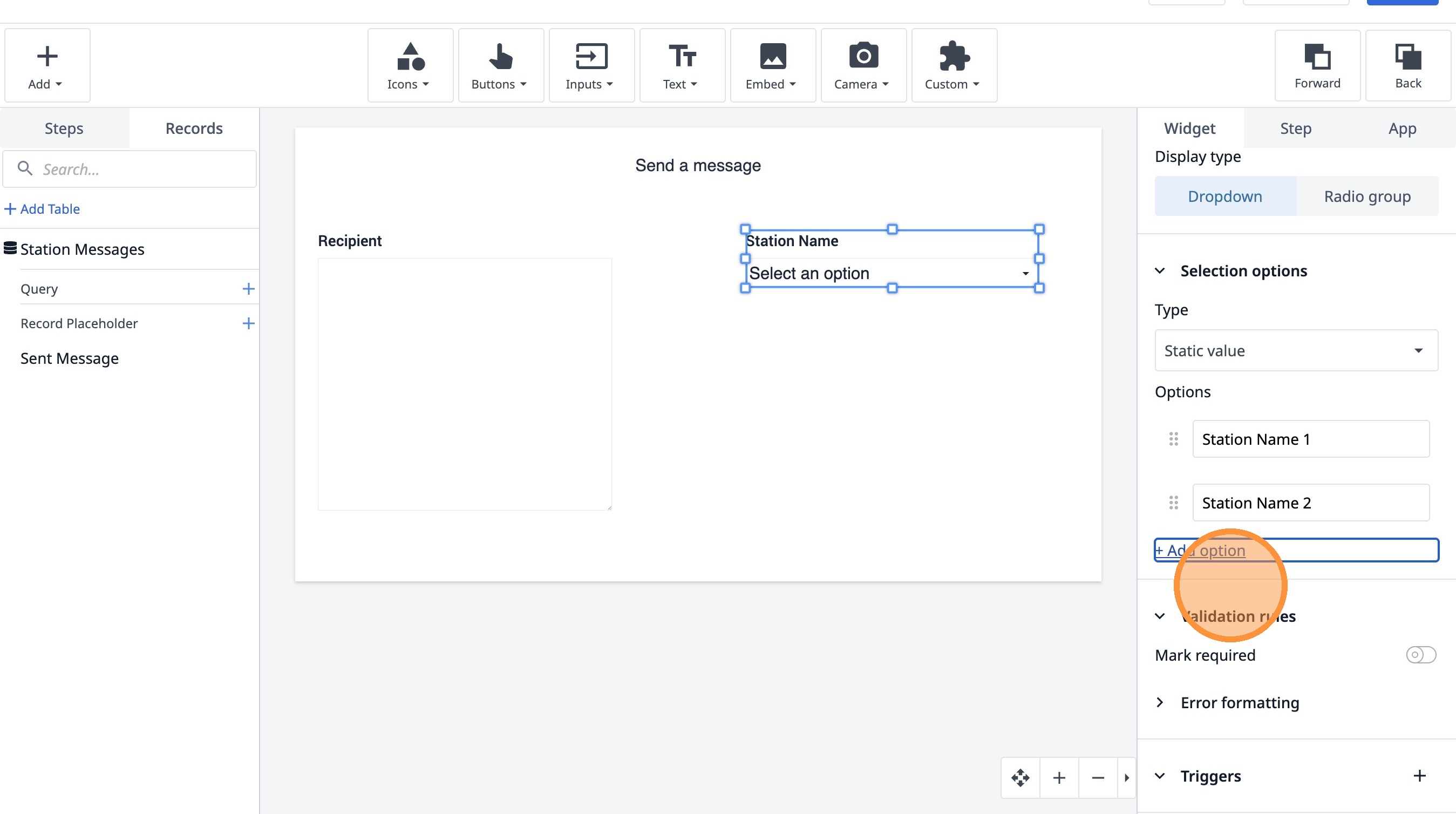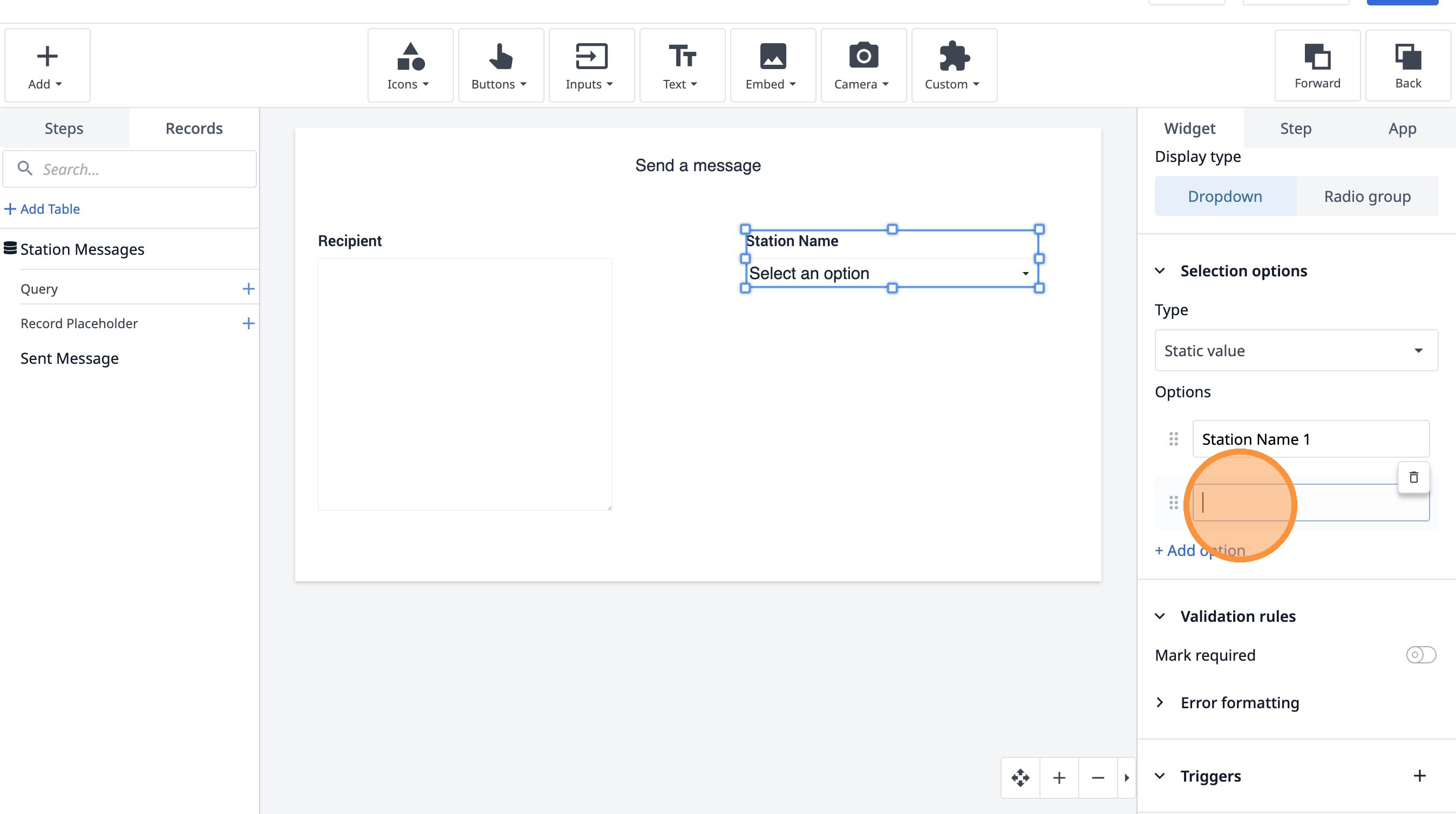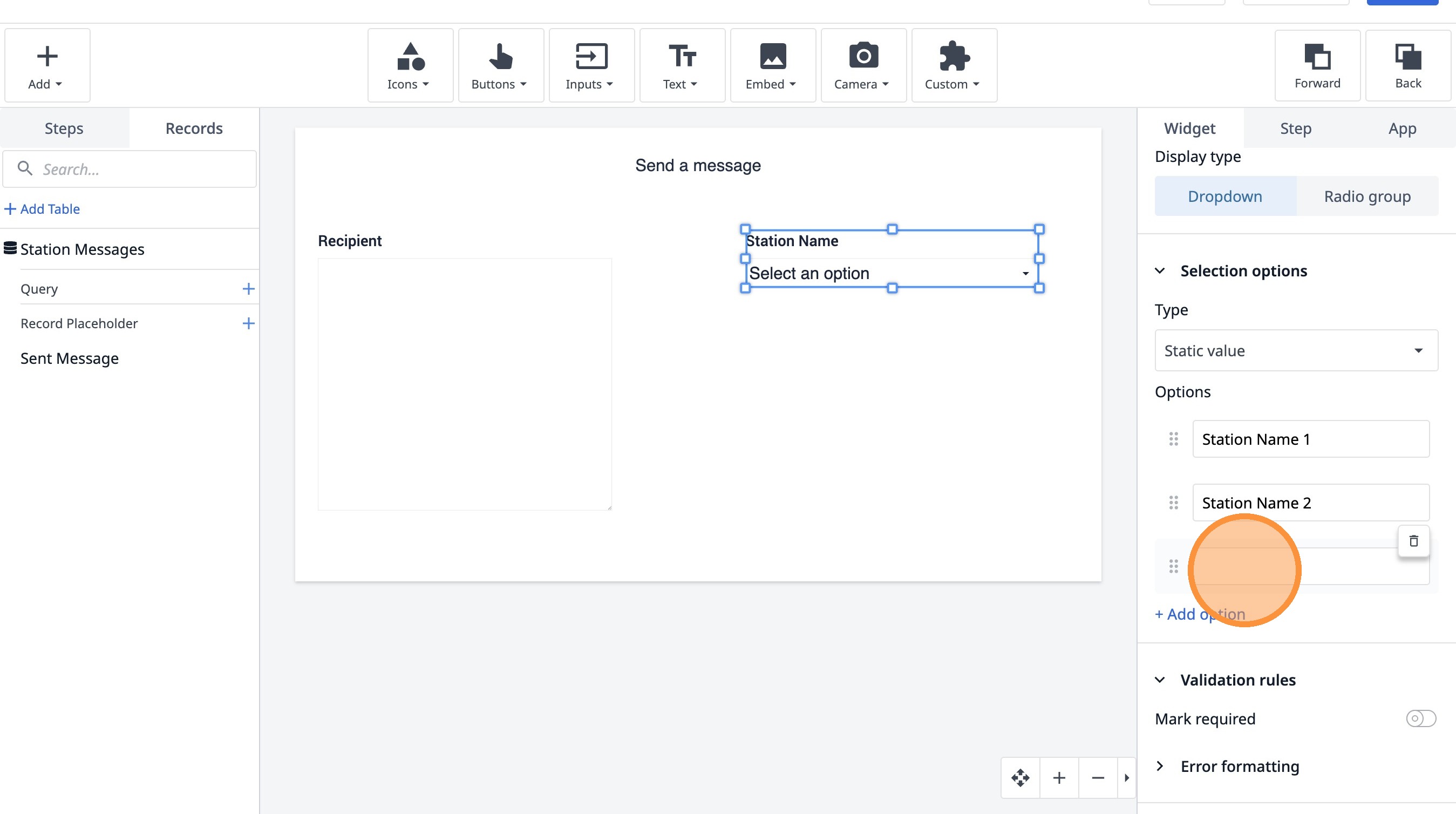 14. Click "Add record placeholder"