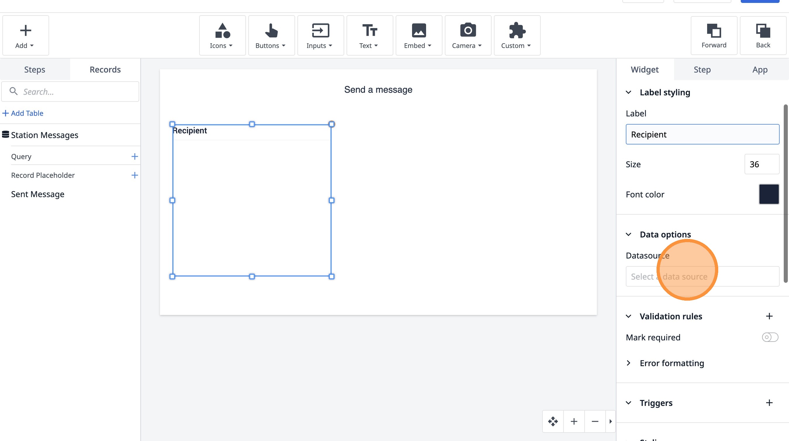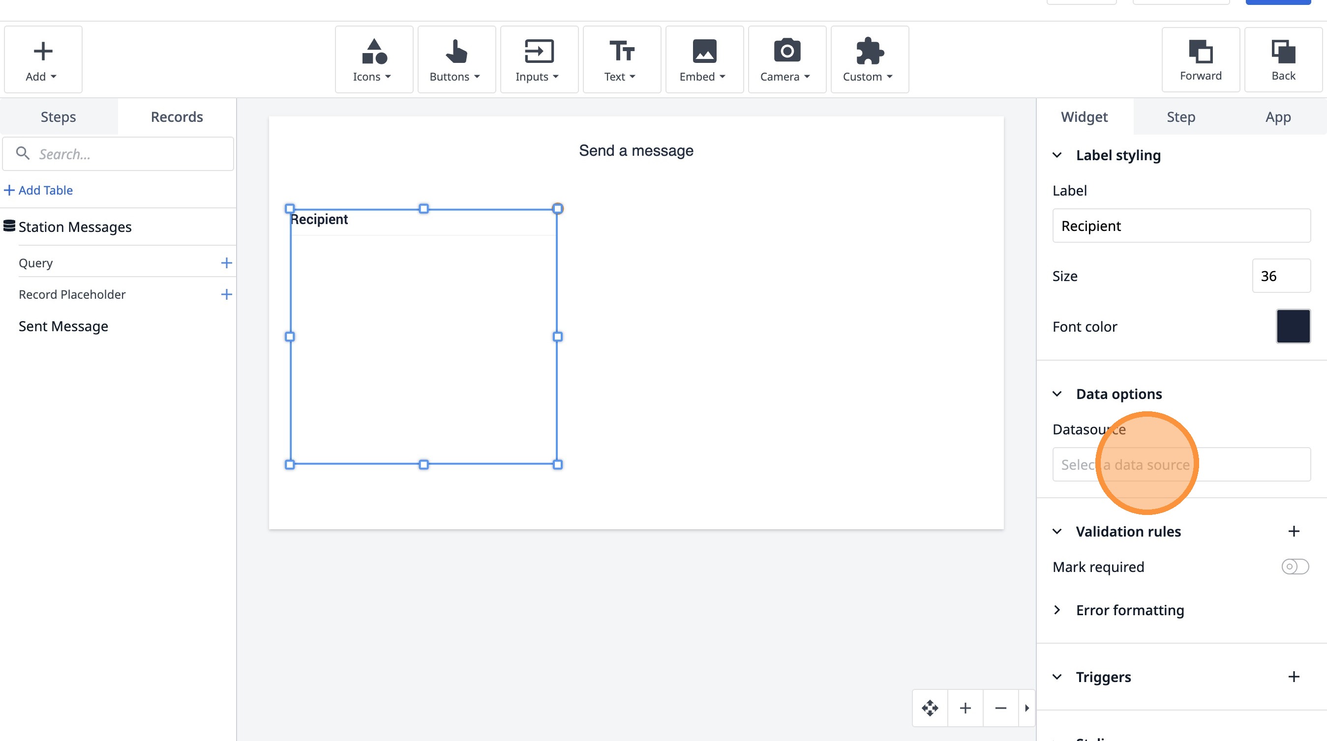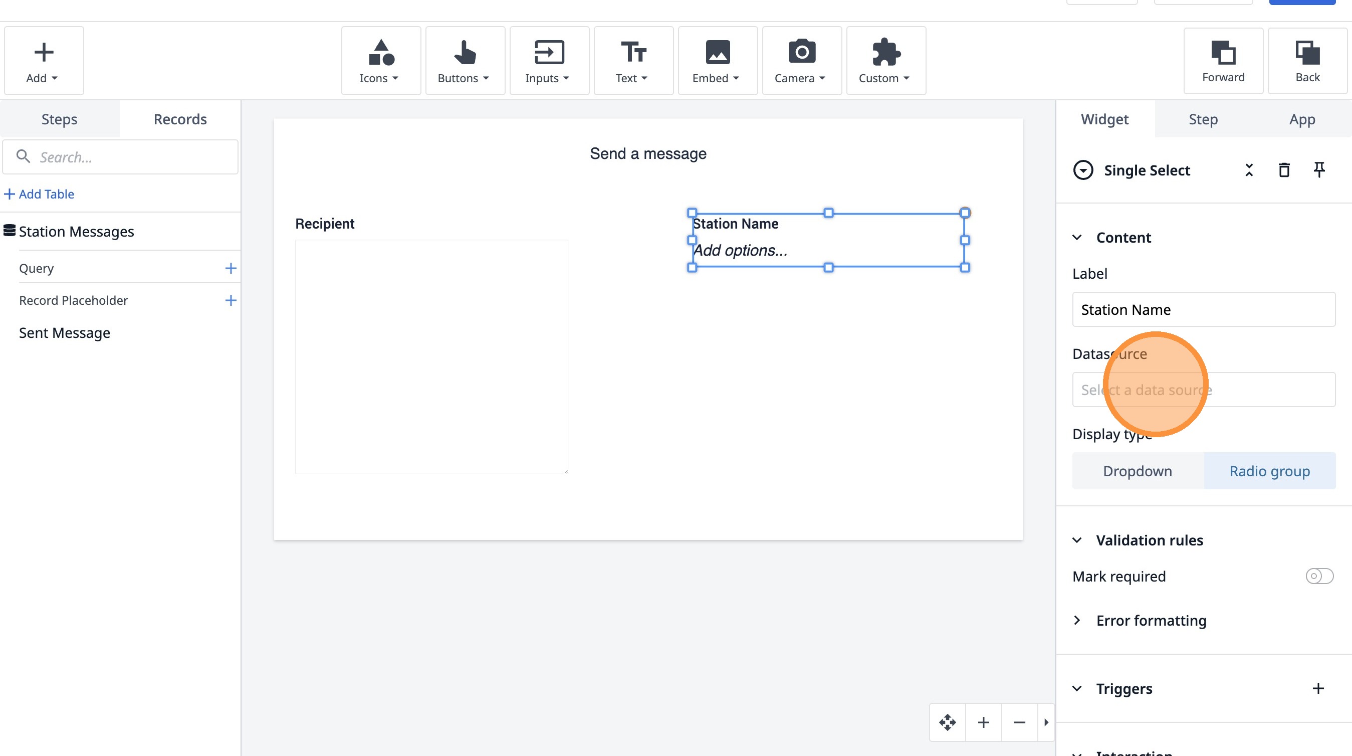 14. Click "Add record placeholder"