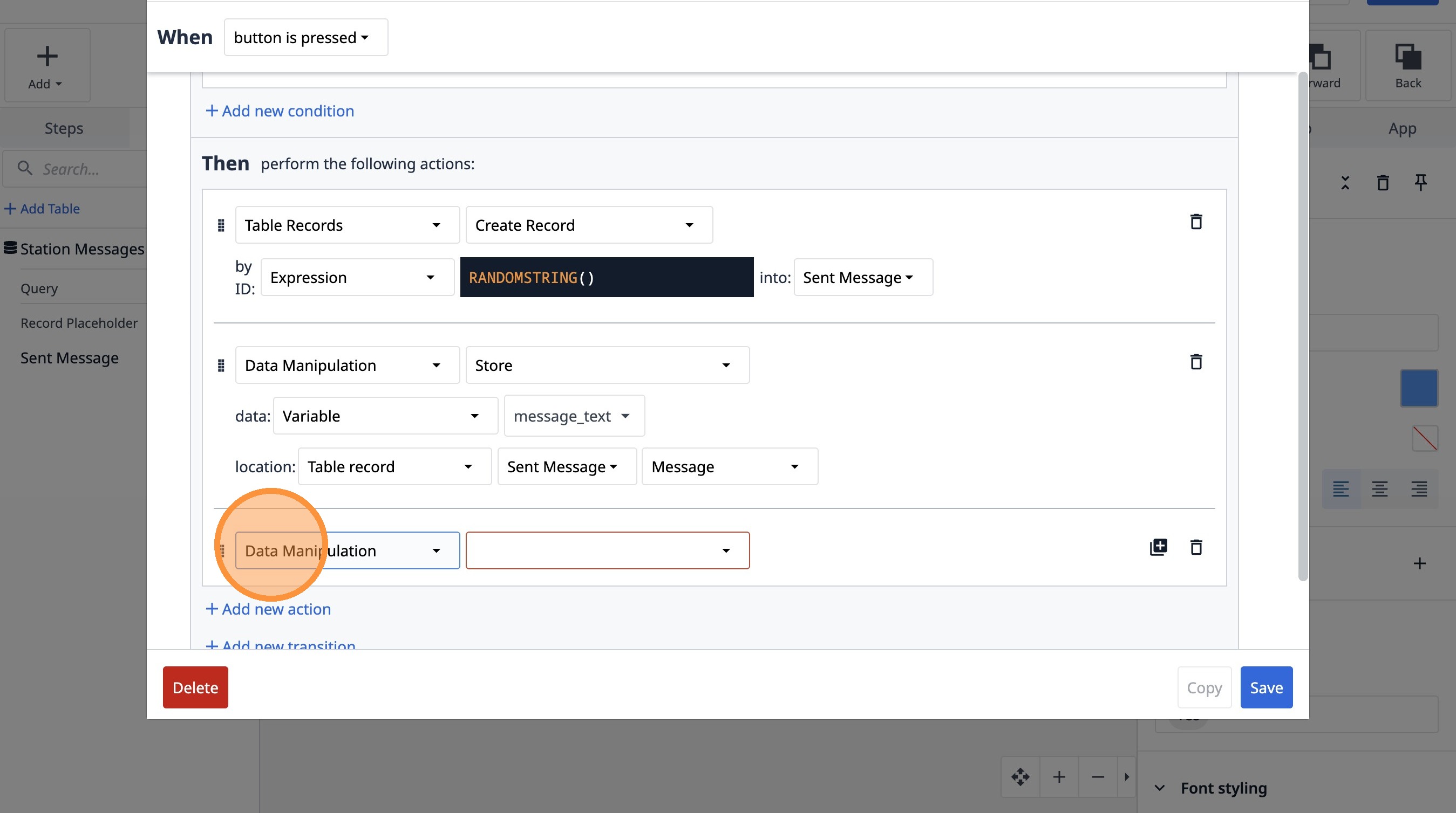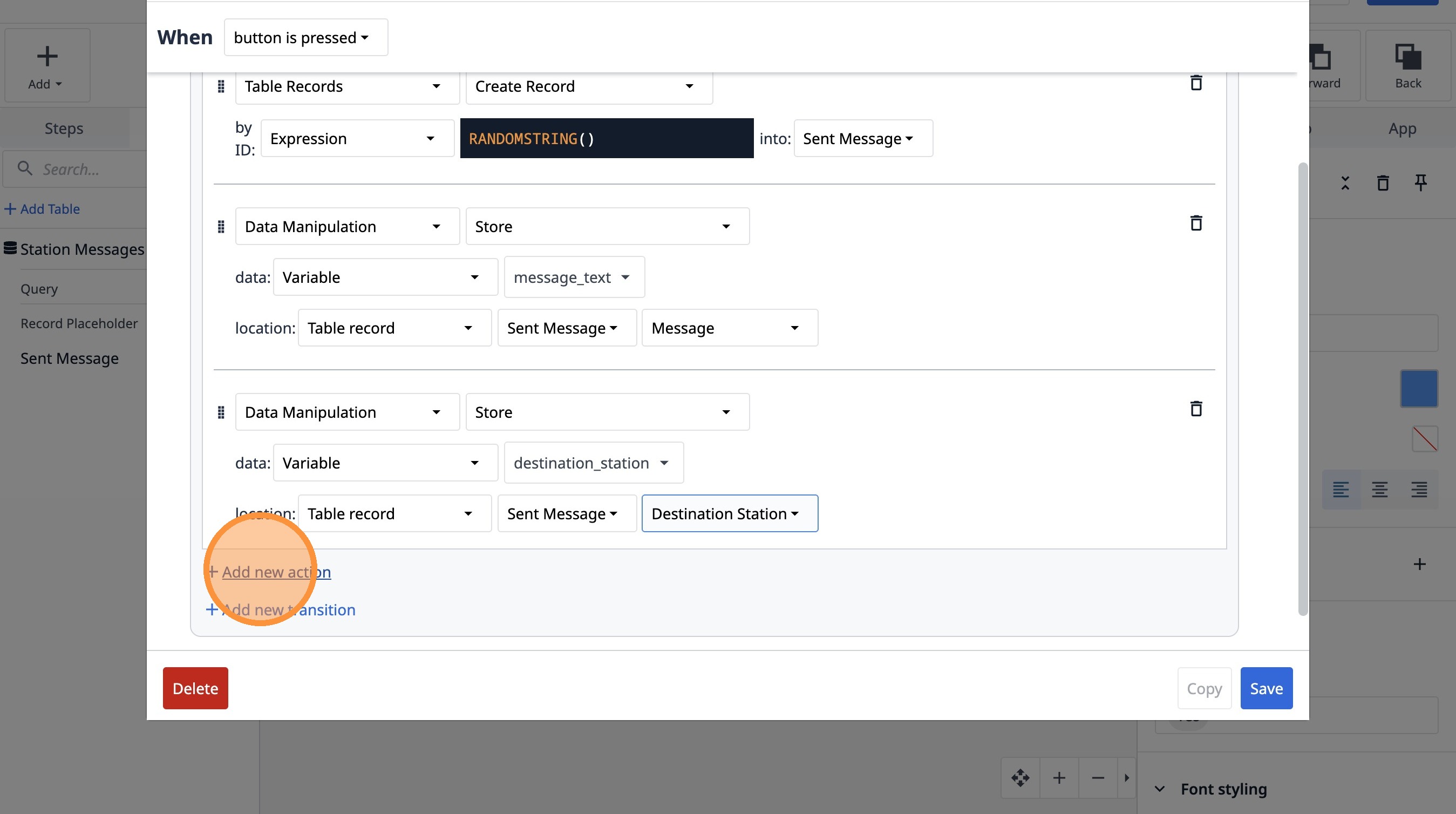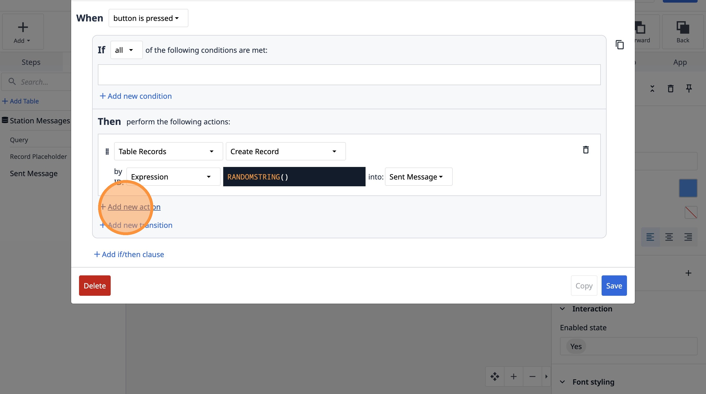 95. Click "Add new action"