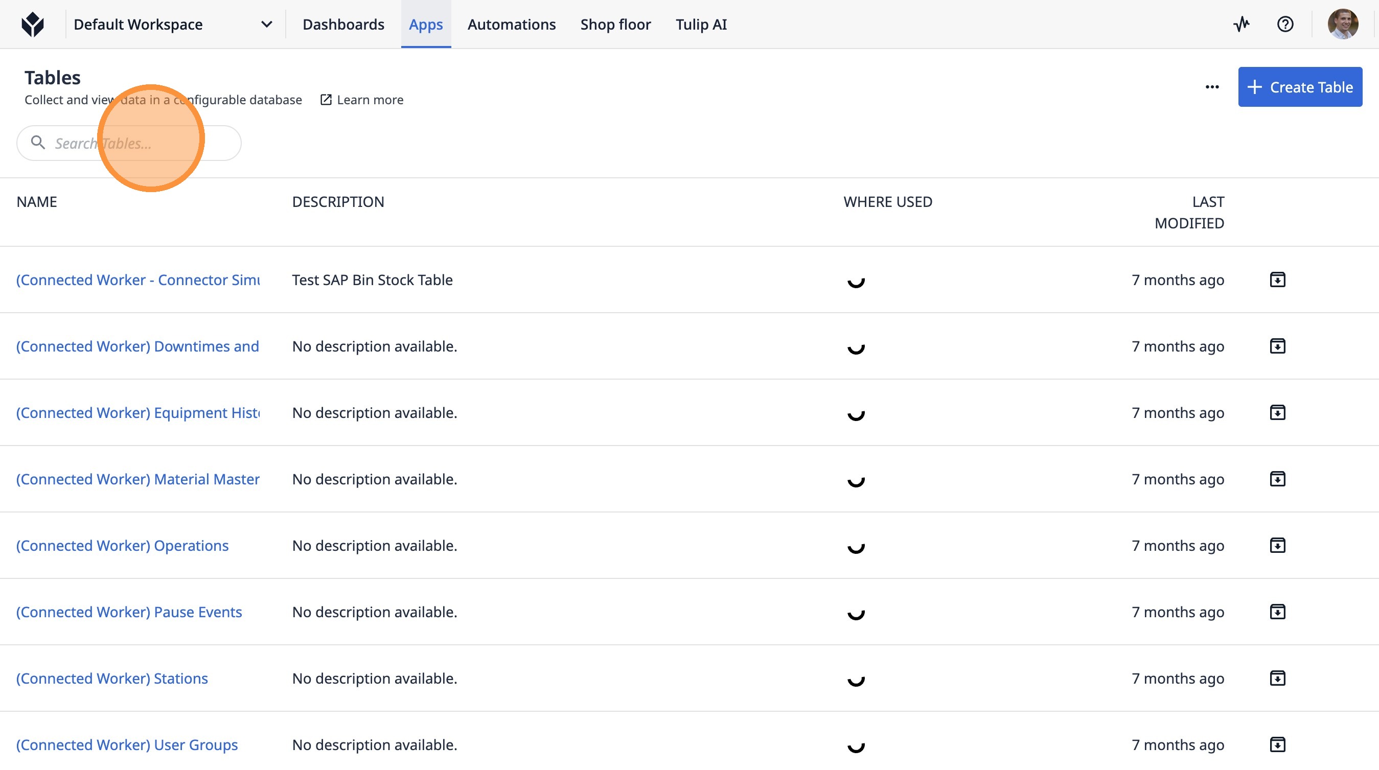 75. Click the "Search Tables..." field.