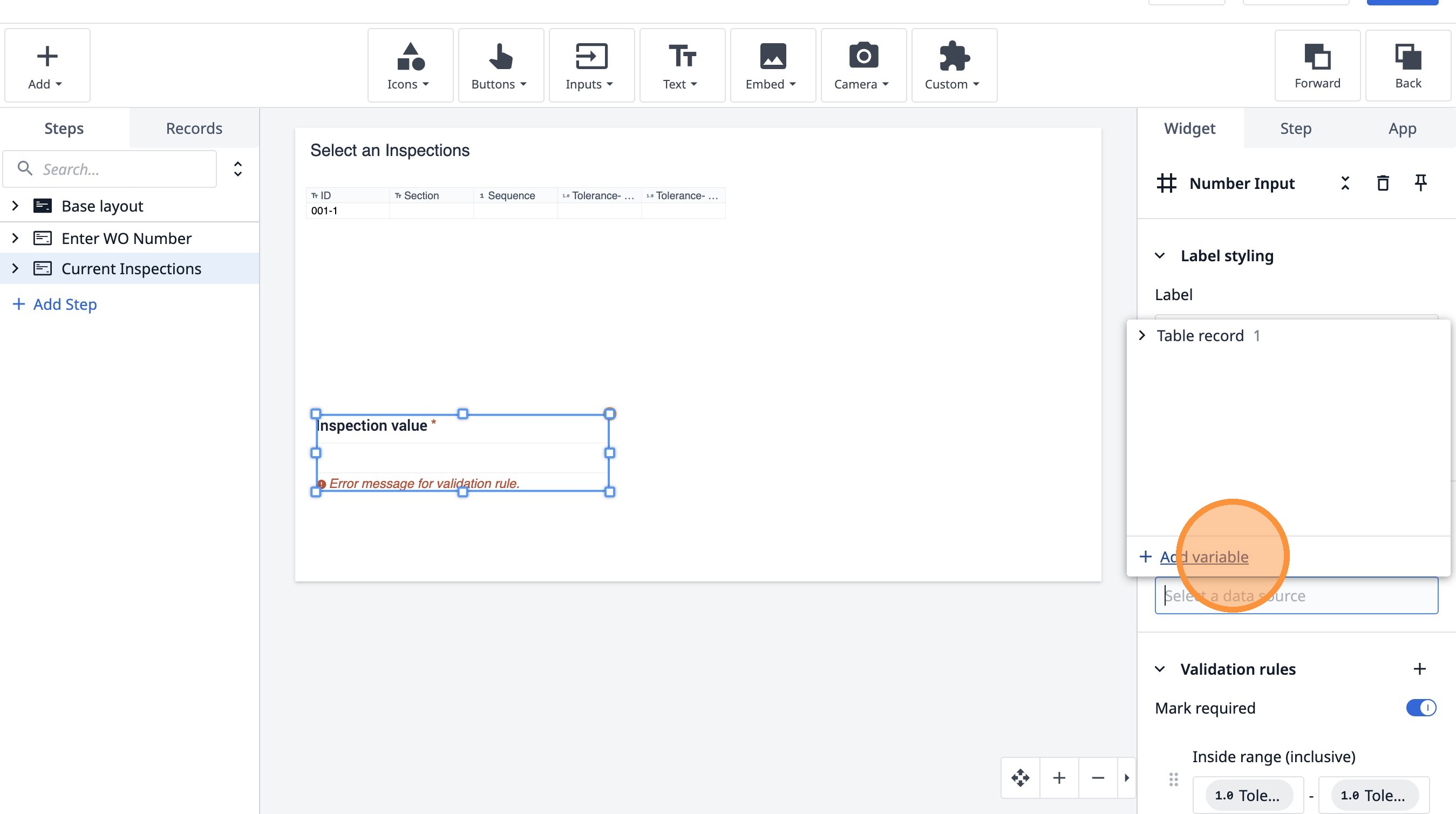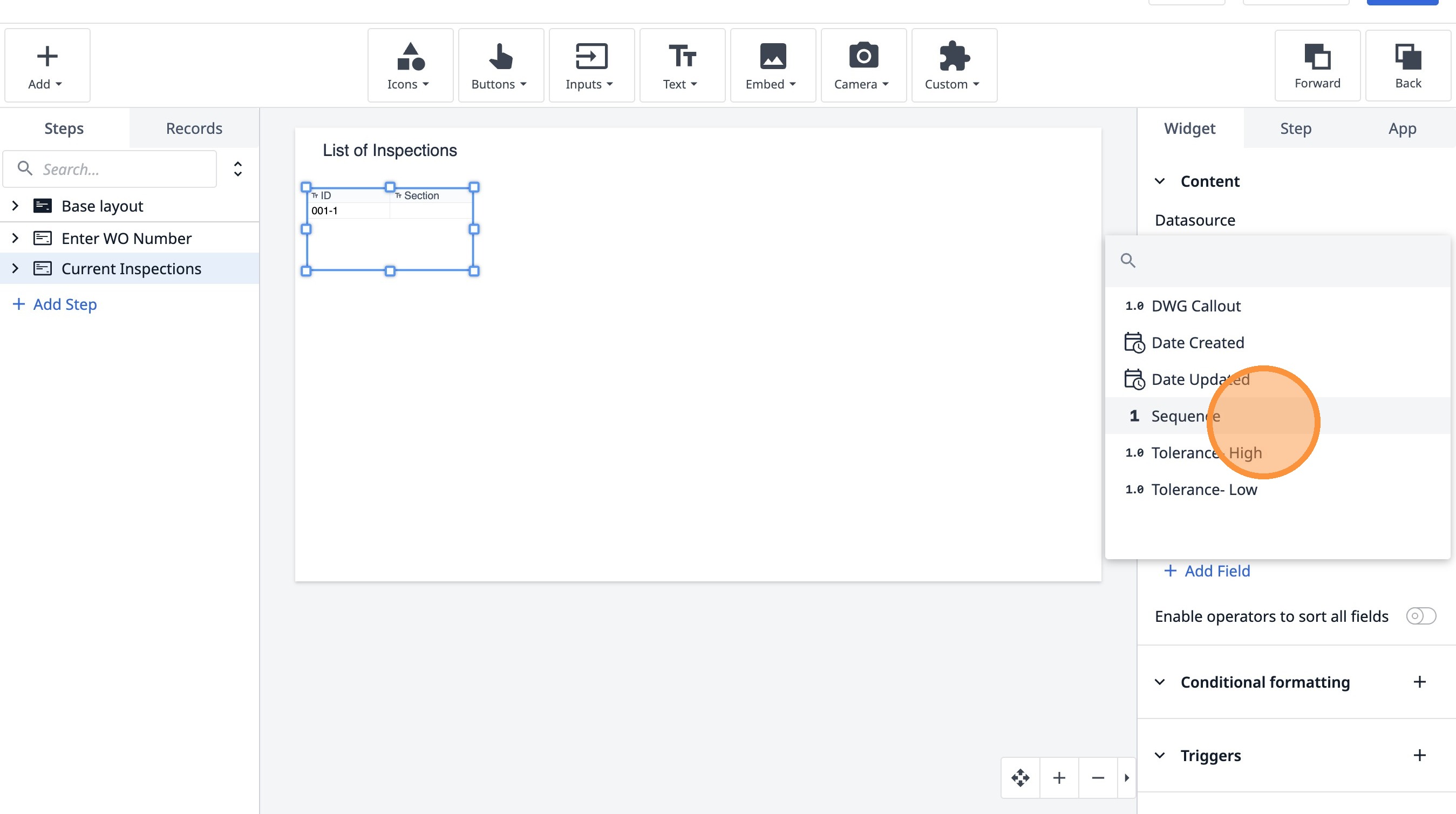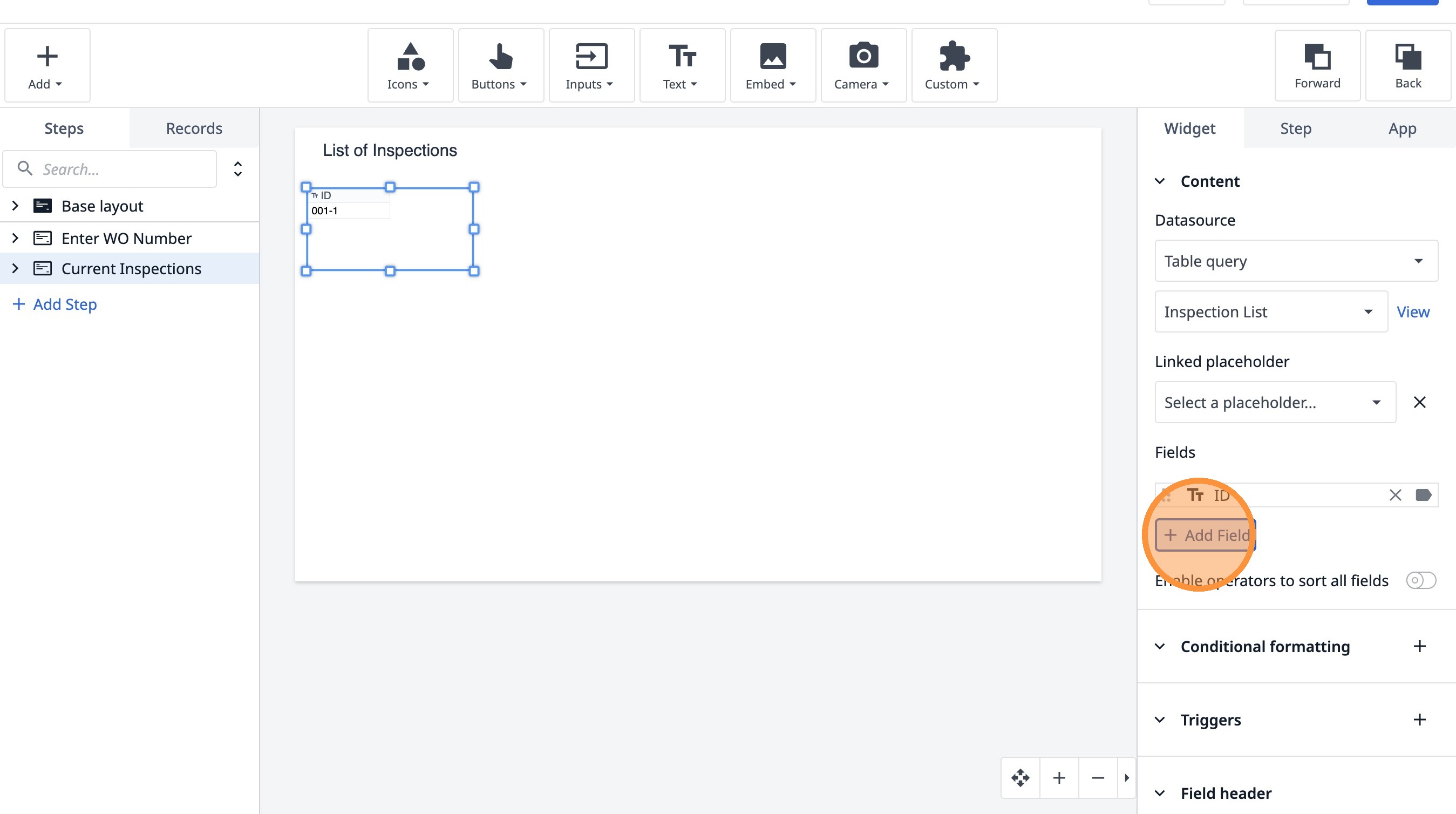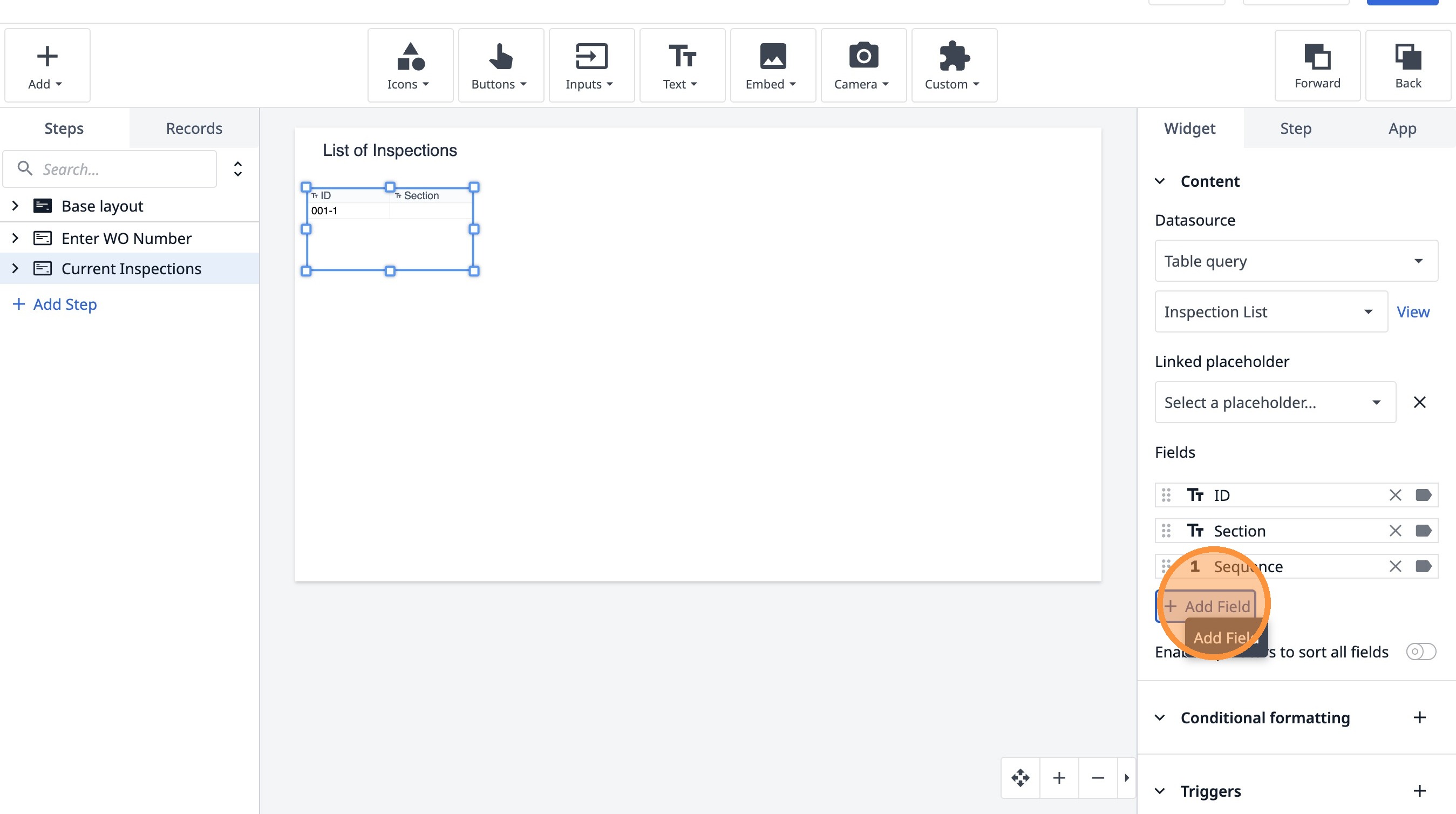 Learn how to build an interactive table widget to display inspection data. This guide will walk you through configuring a table to show inspection details and setting up dynamic data display for improved workflow visualization.