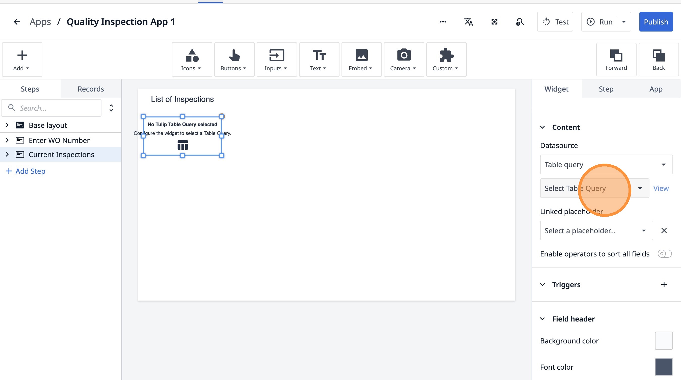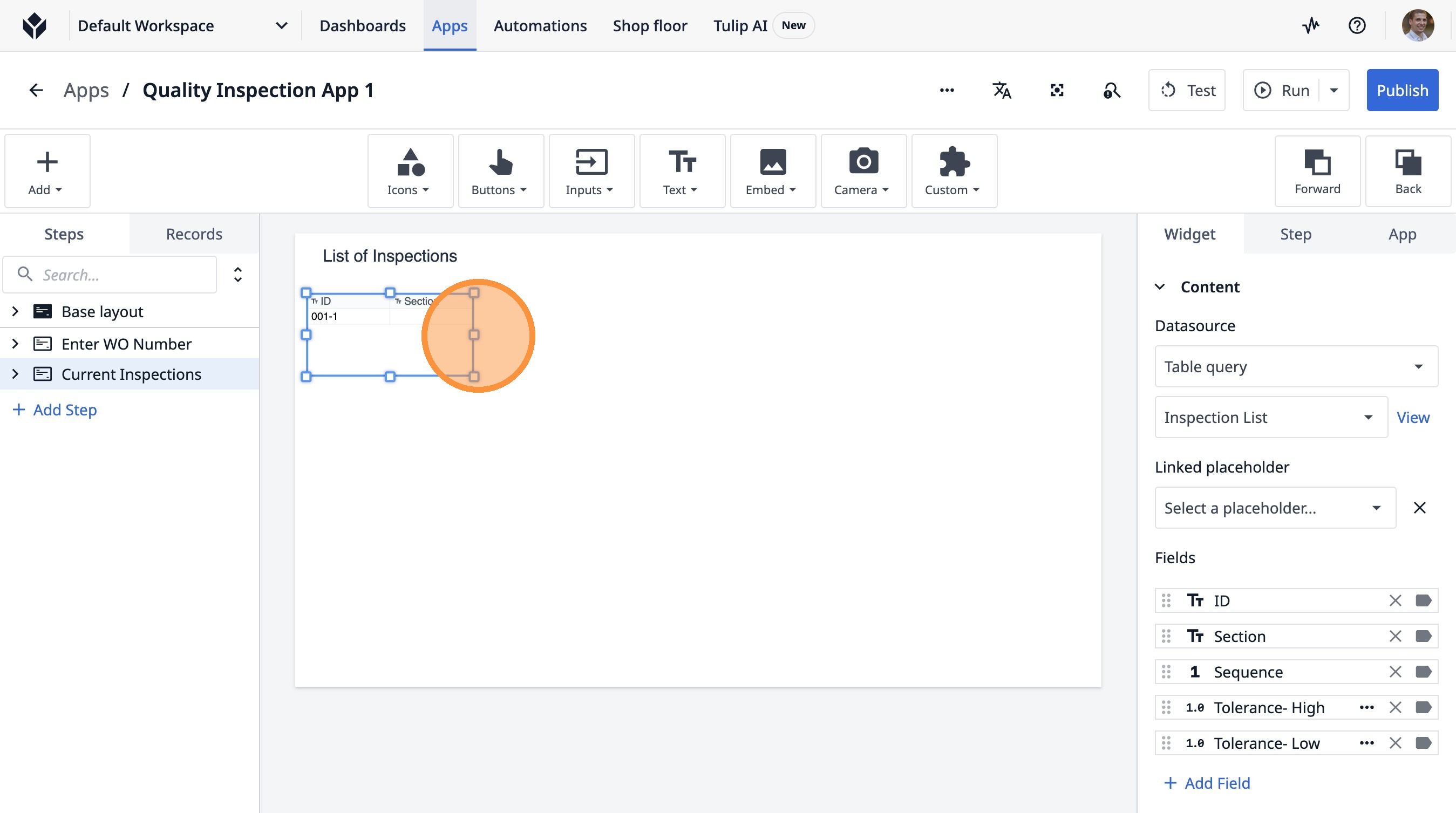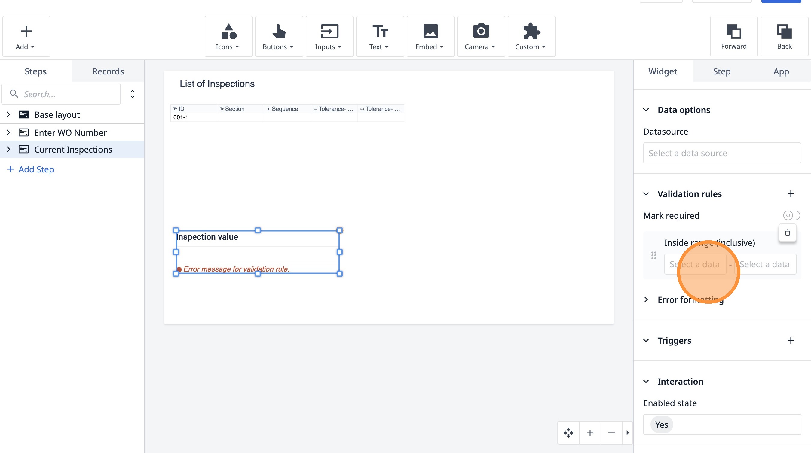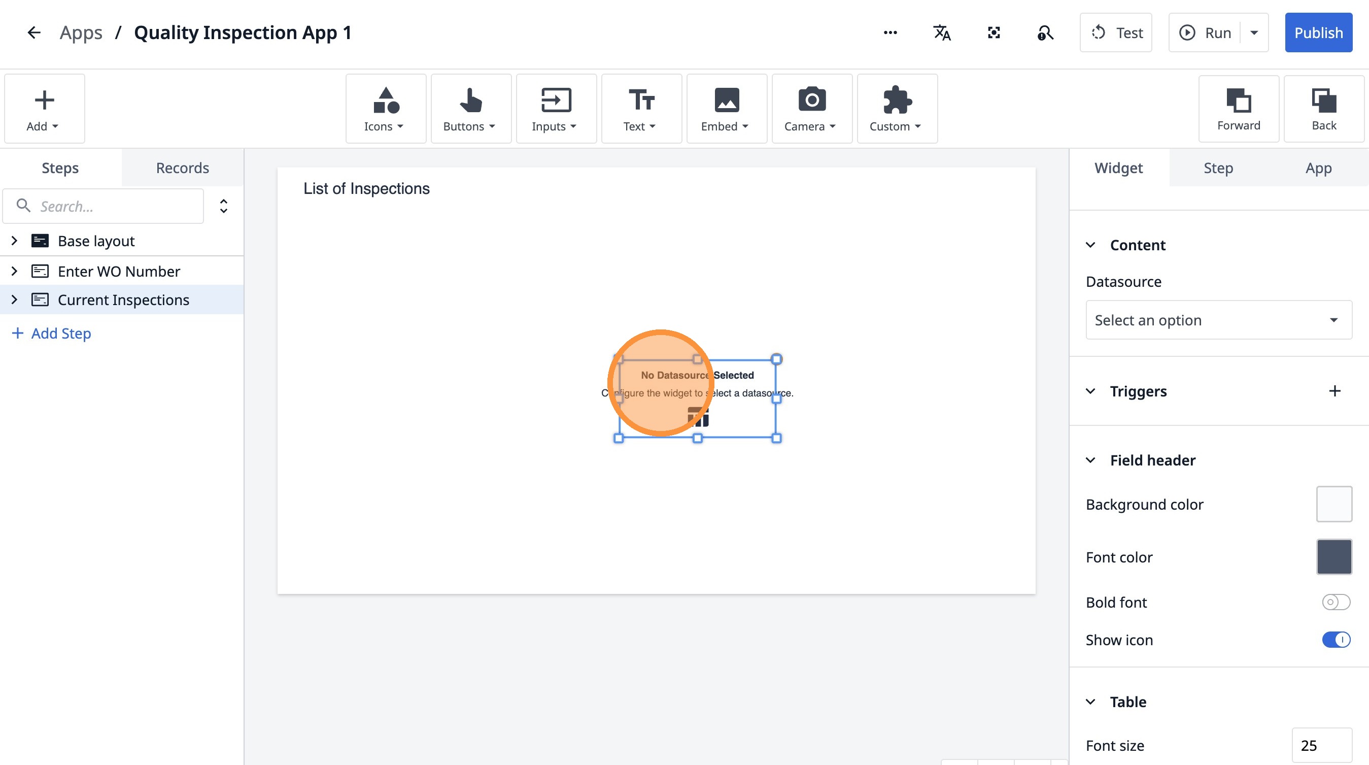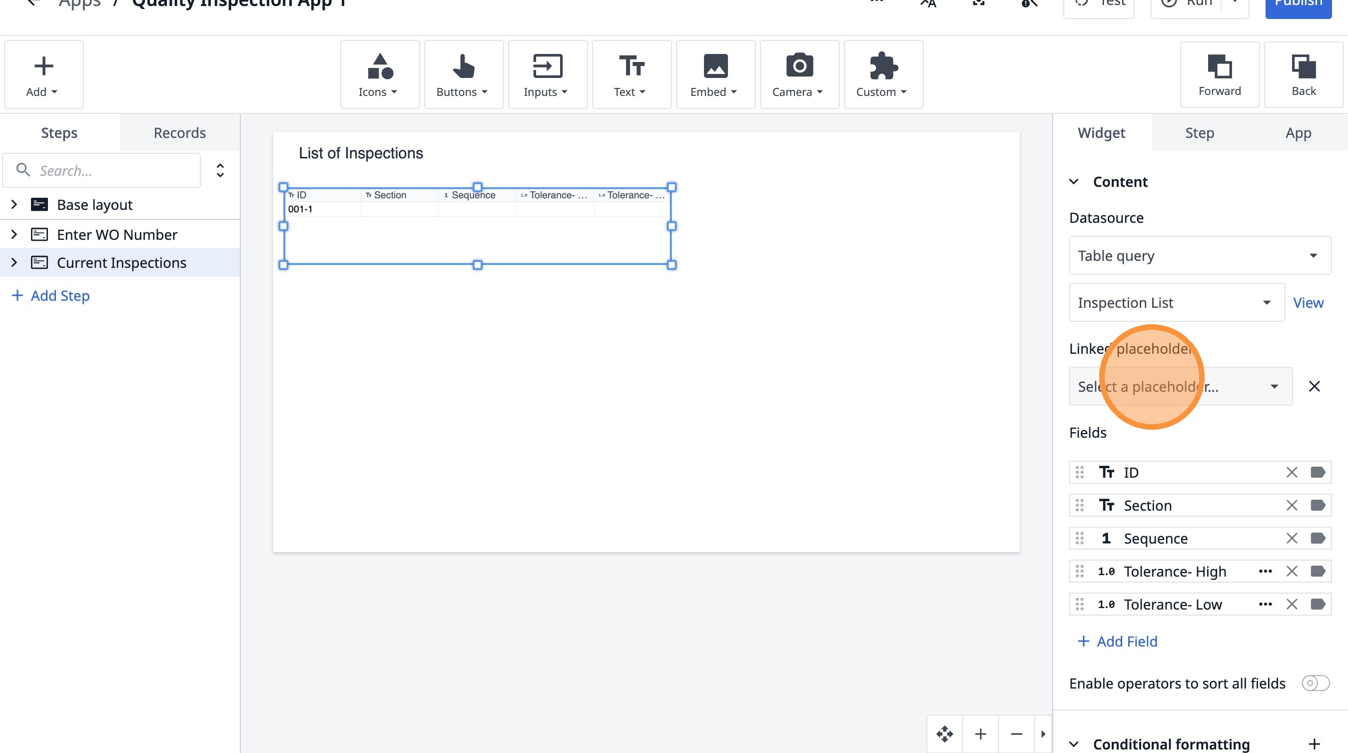 Learn how to build an interactive table widget to display inspection data. This guide will walk you through configuring a table to show inspection details and setting up dynamic data display for improved workflow visualization.