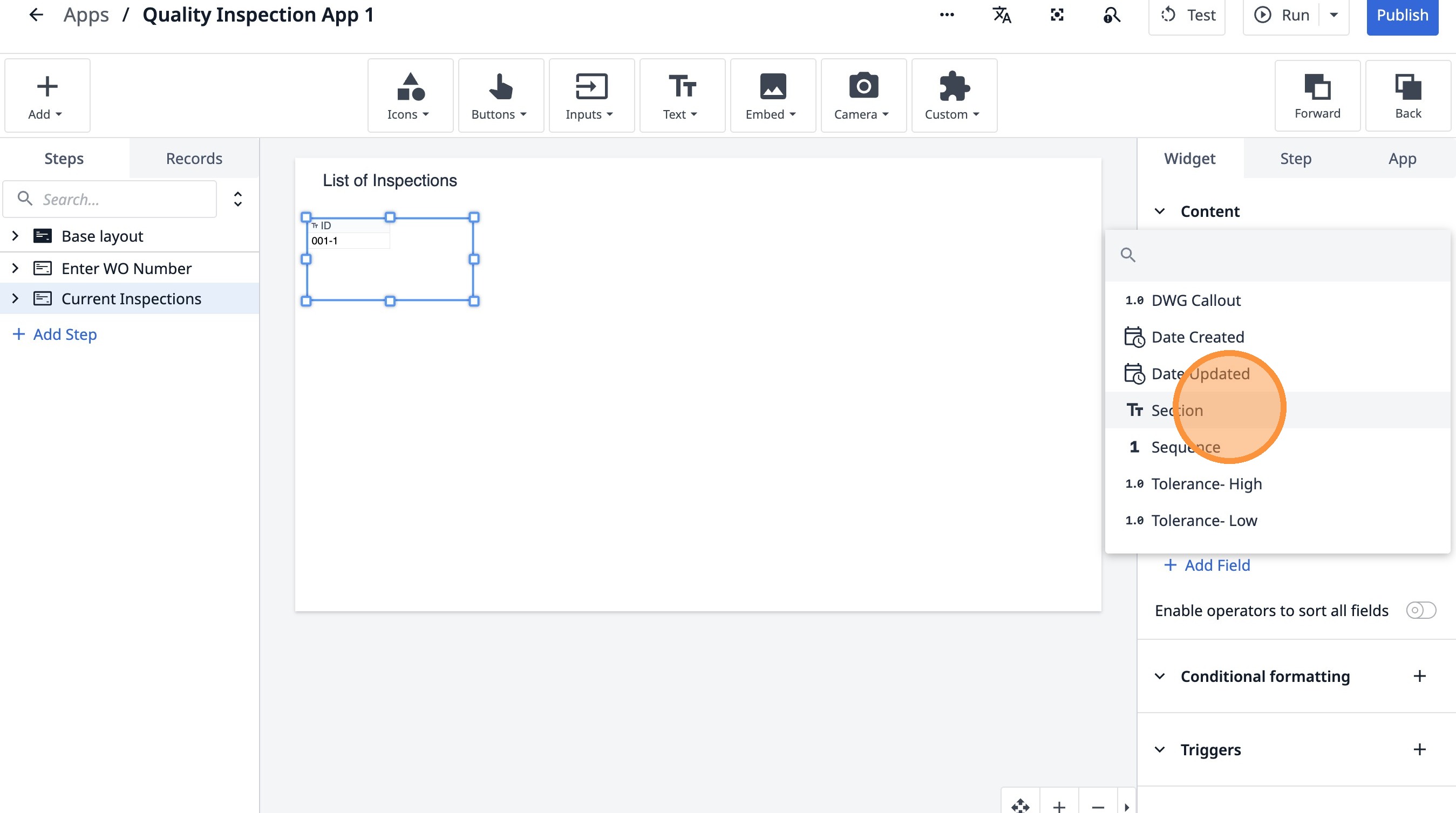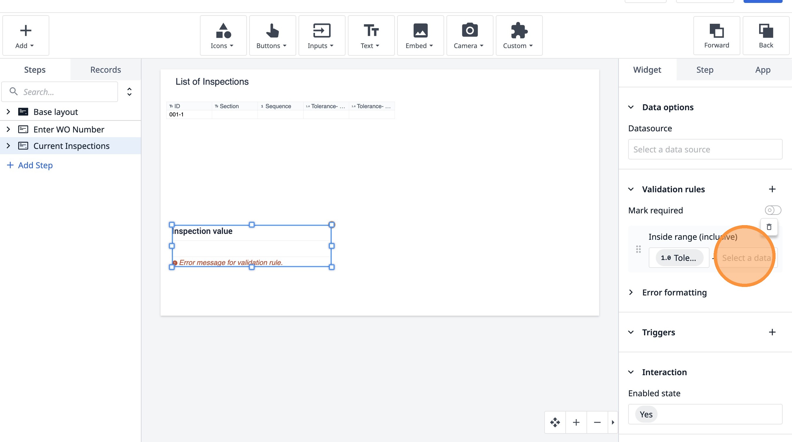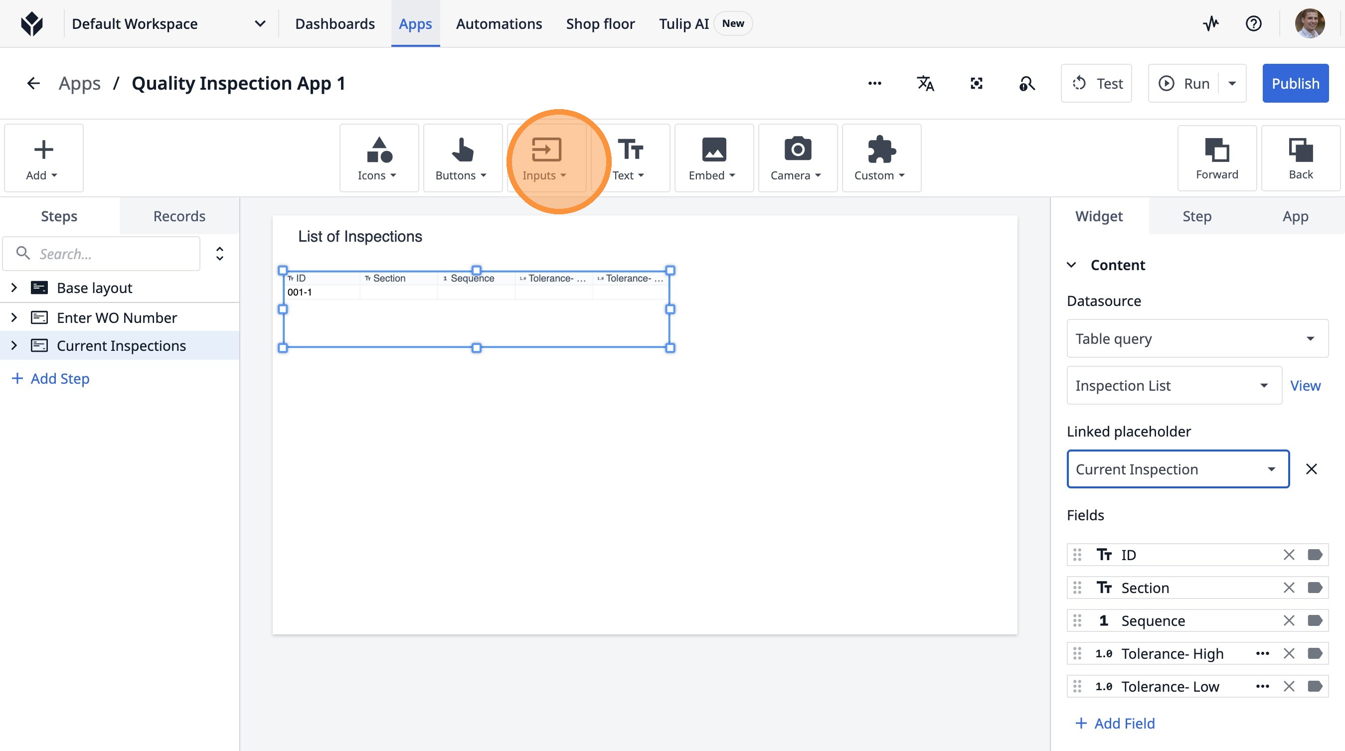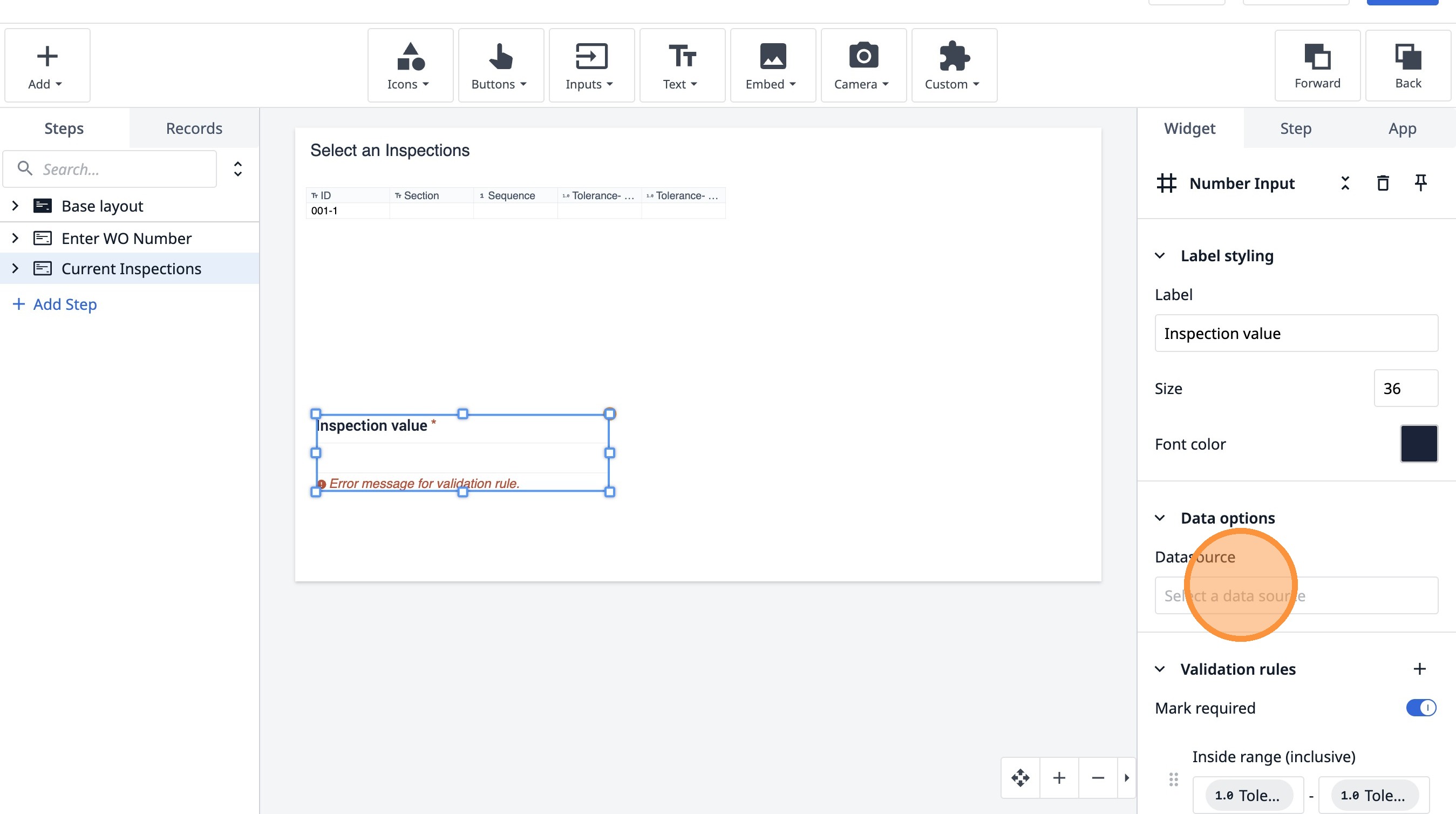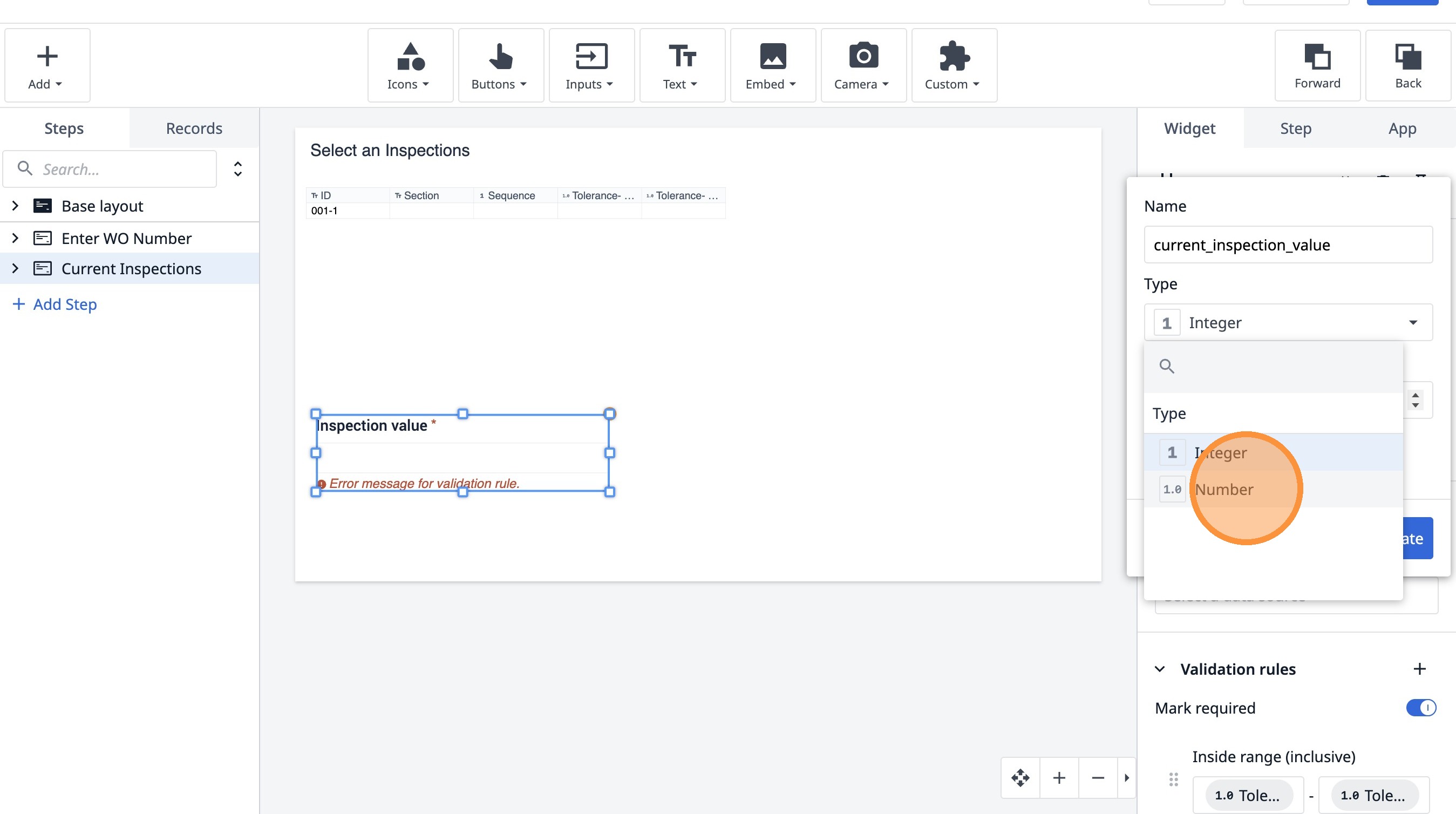 Learn how to build an interactive table widget to display inspection data. This guide will walk you through configuring a table to show inspection details and setting up dynamic data display for improved workflow visualization.