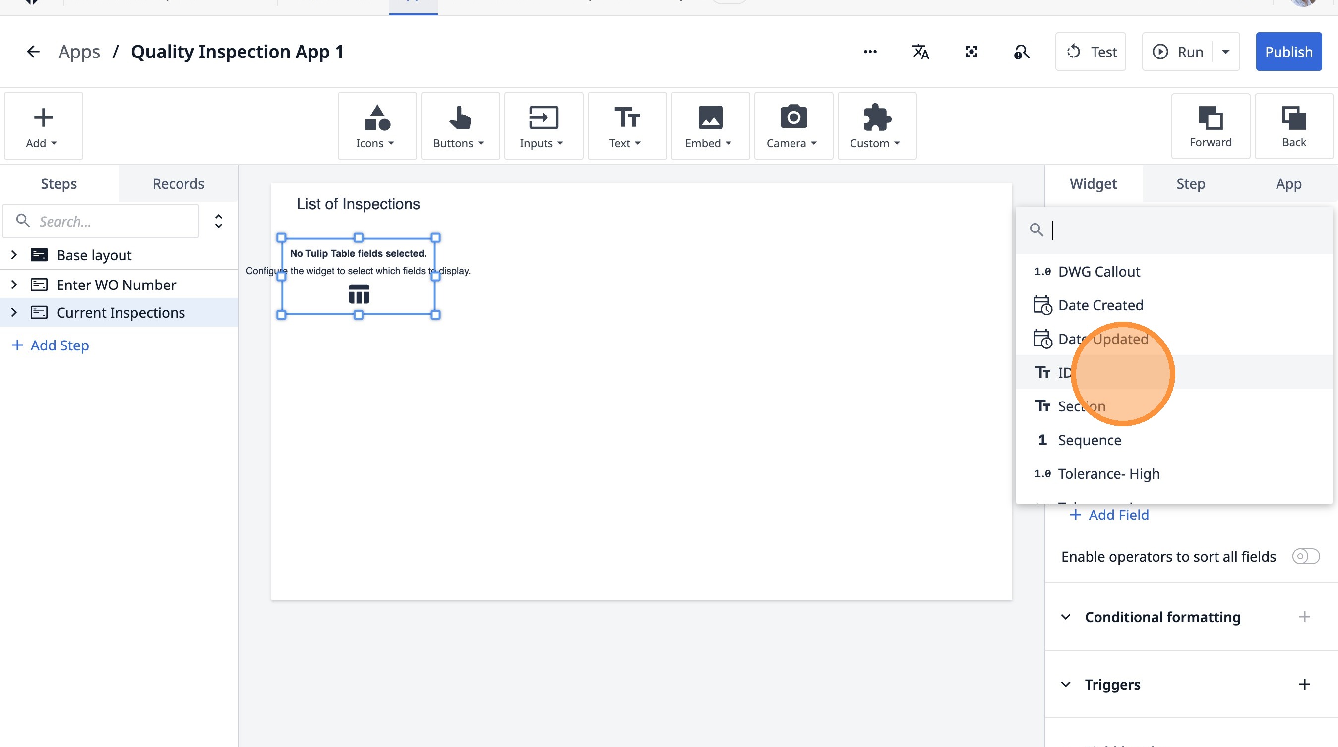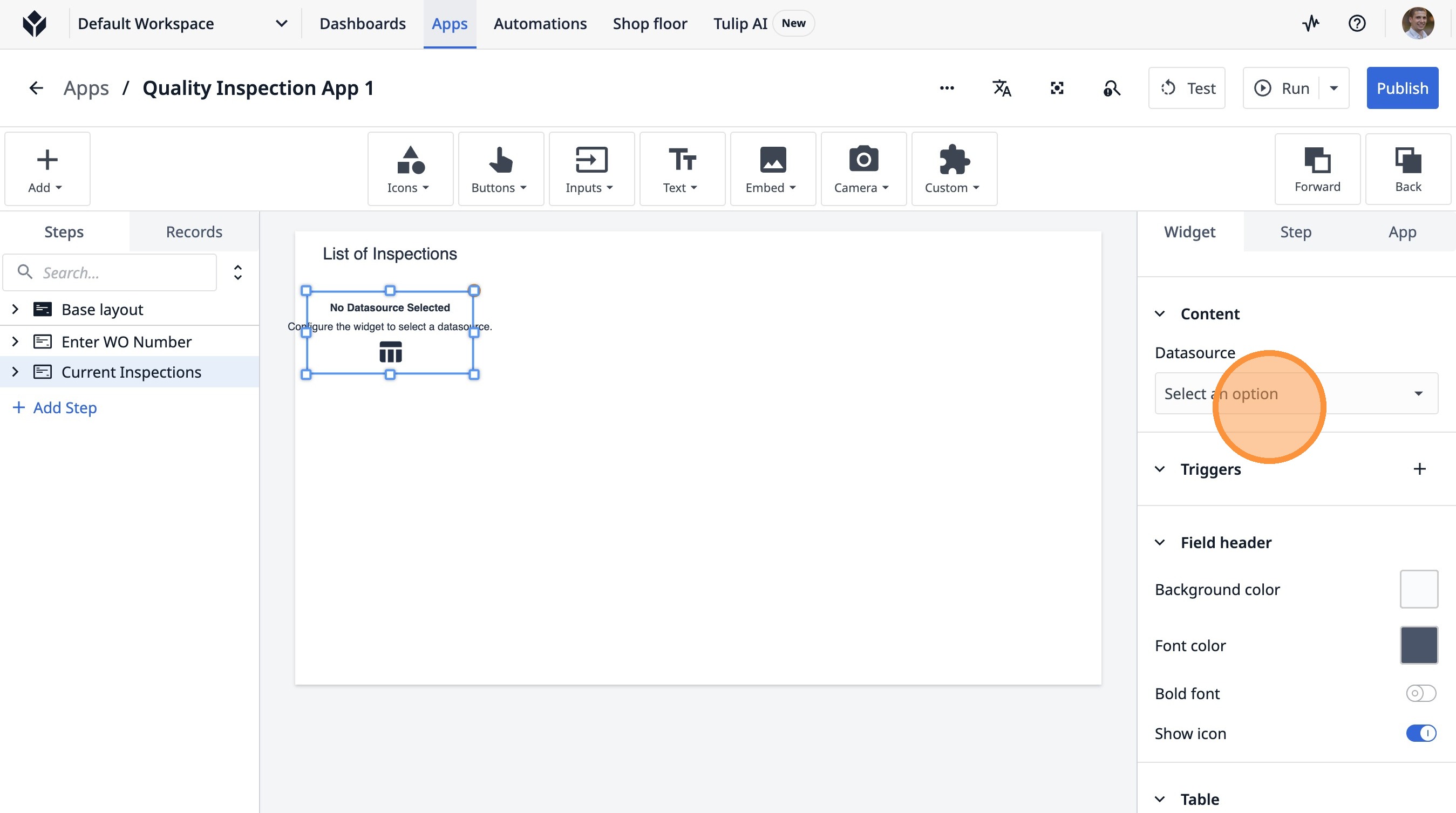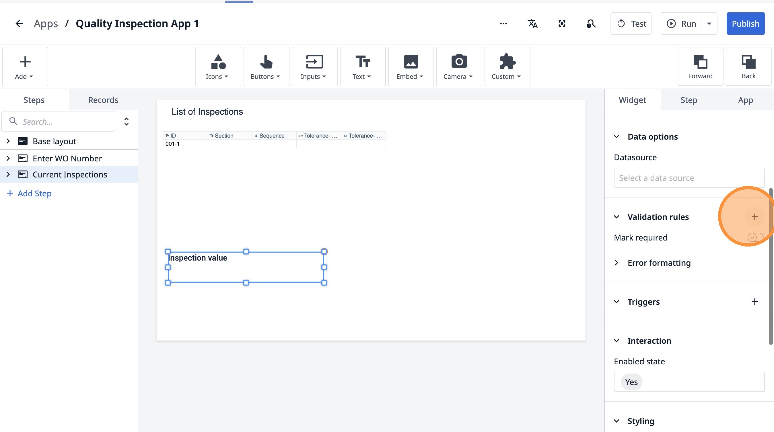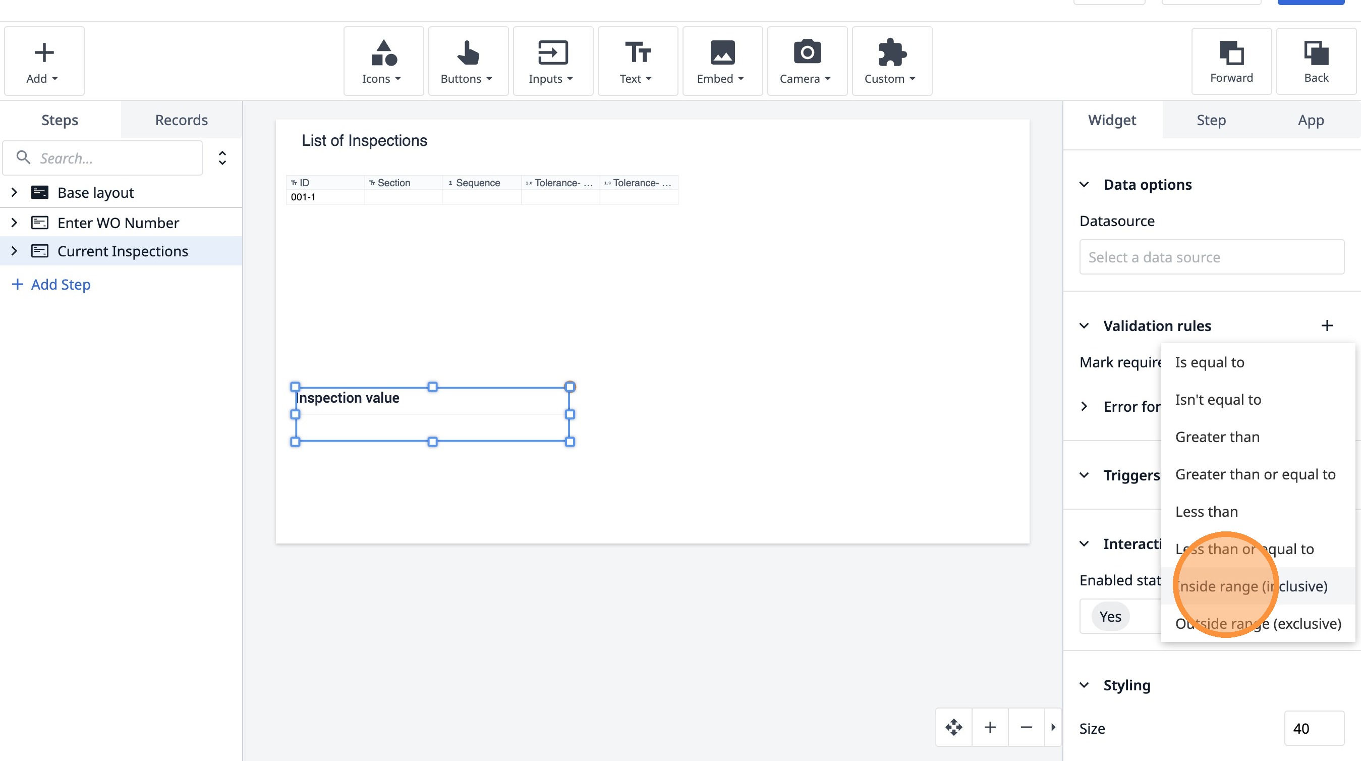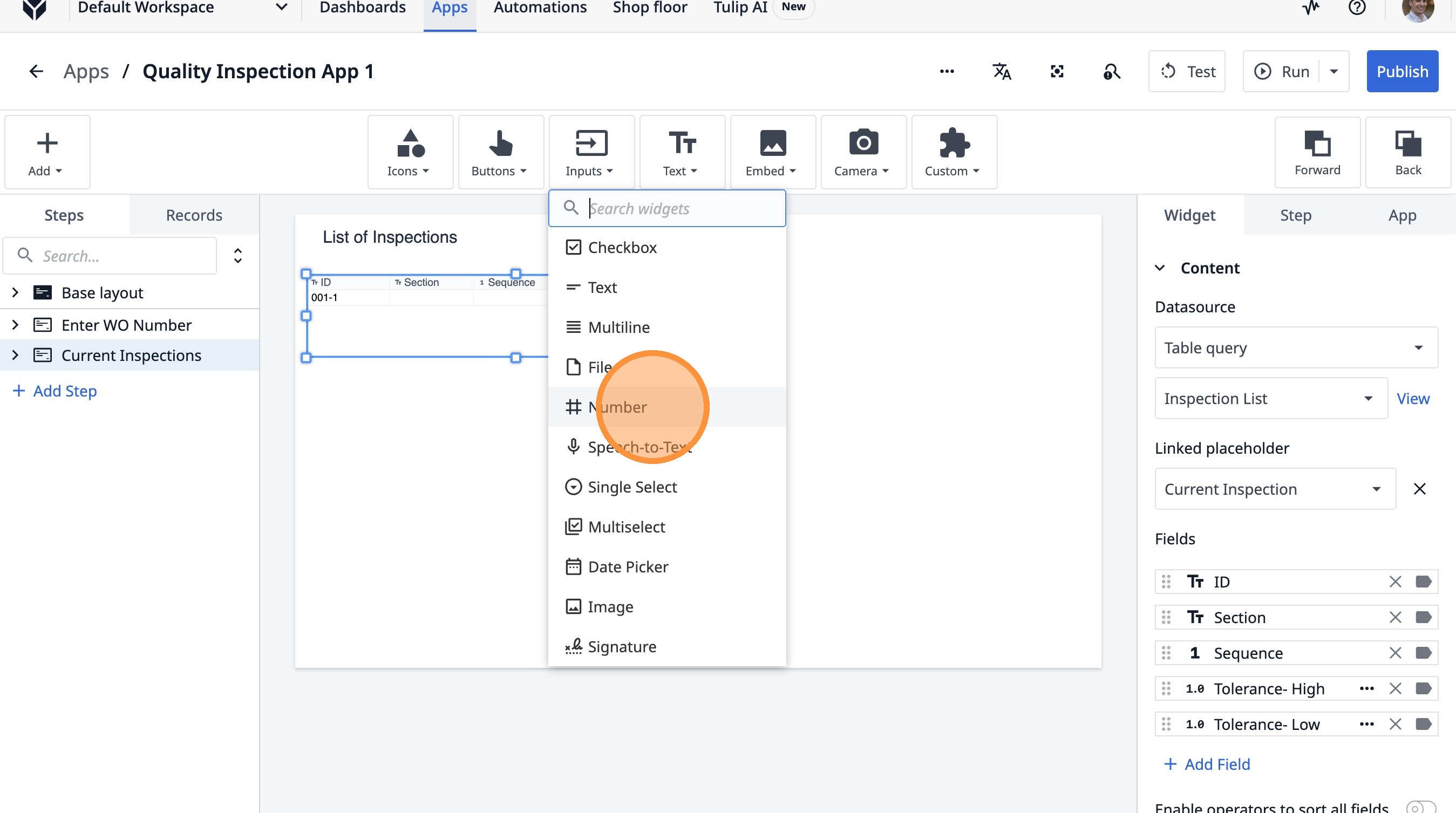 Learn how to build an interactive table widget to display inspection data. This guide will walk you through configuring a table to show inspection details and setting up dynamic data display for improved workflow visualization.