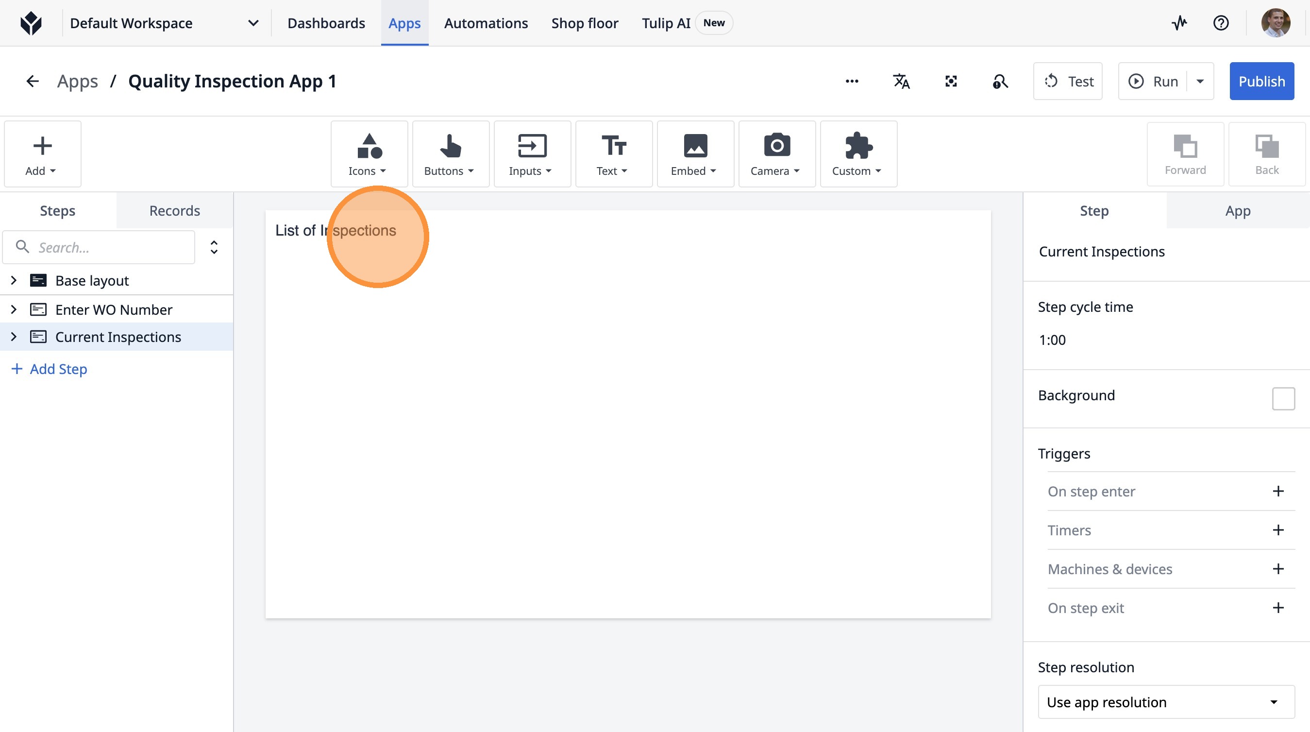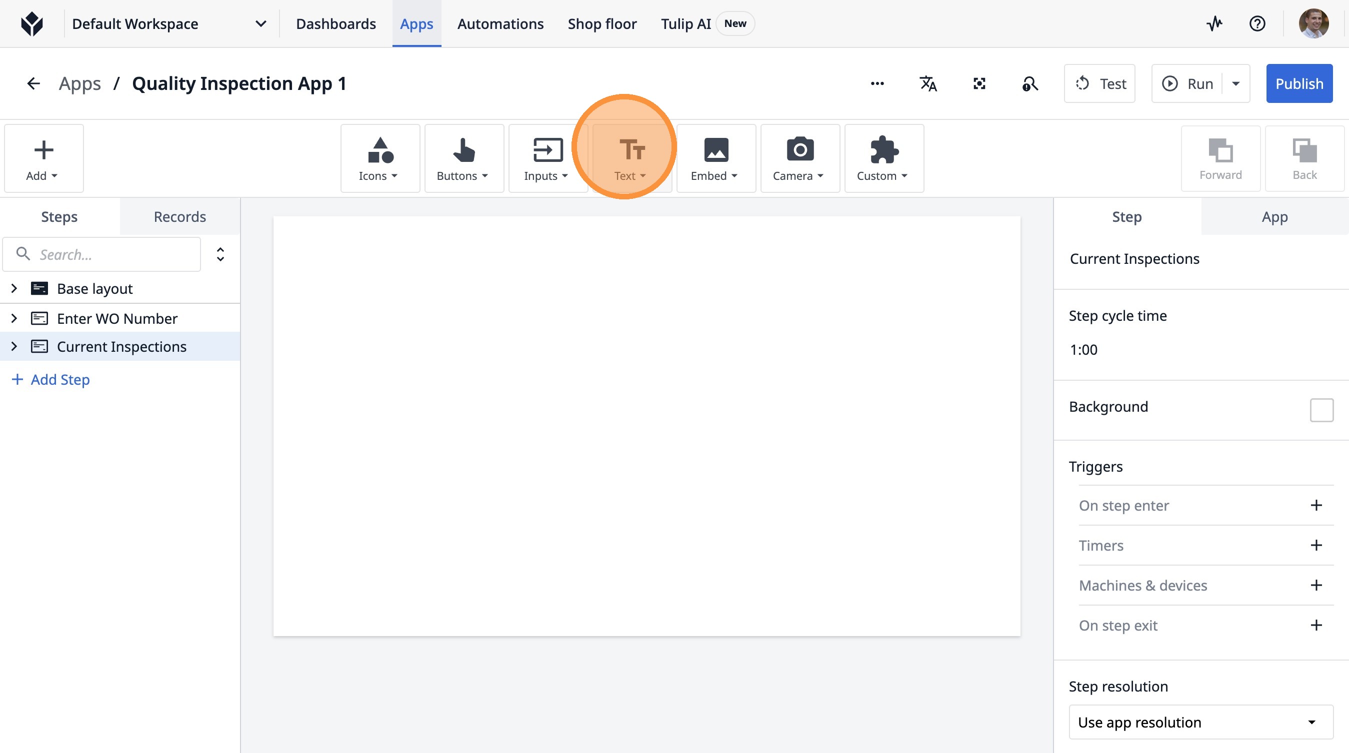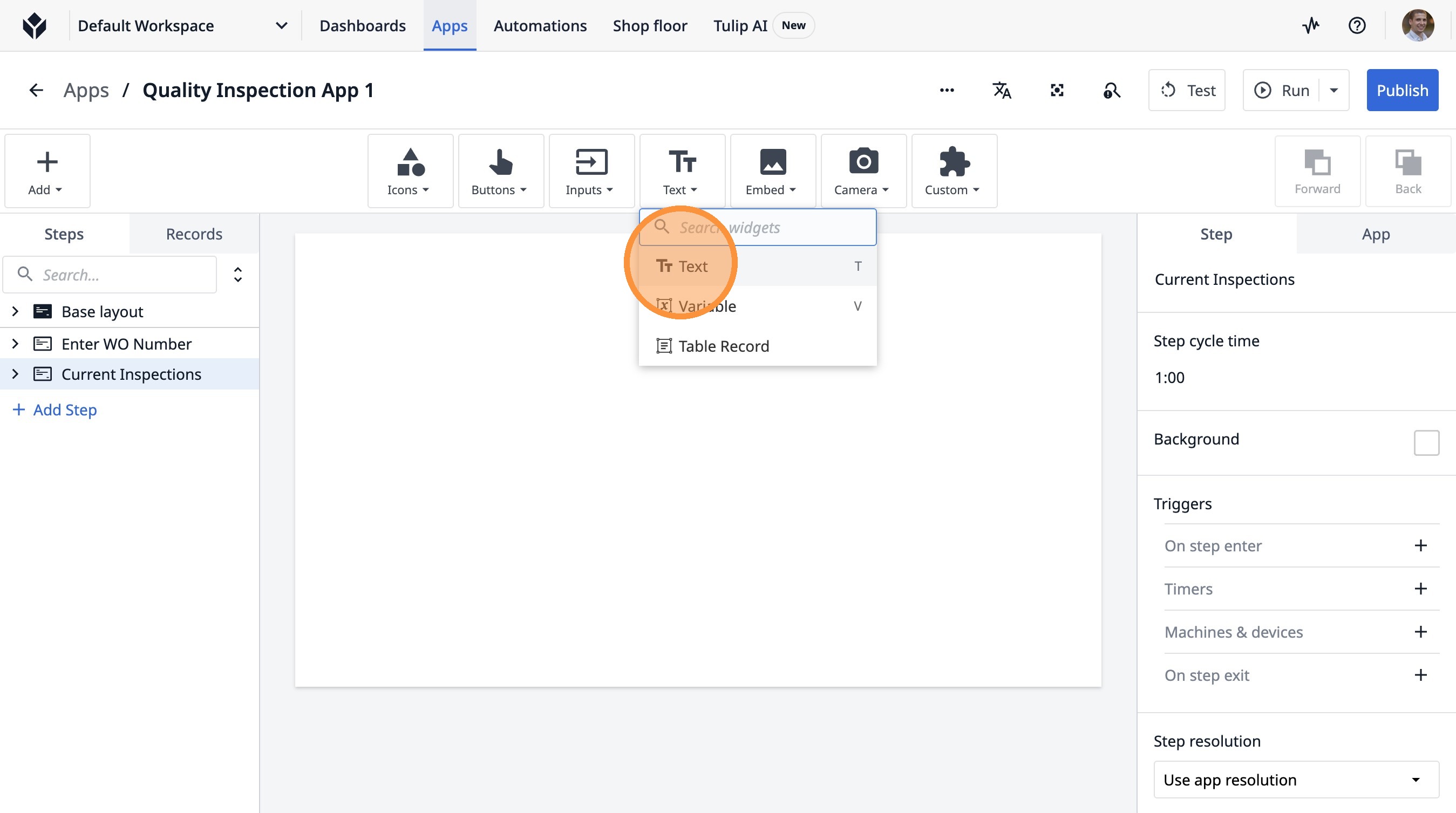 1. Navigate to a step in the App Builder.