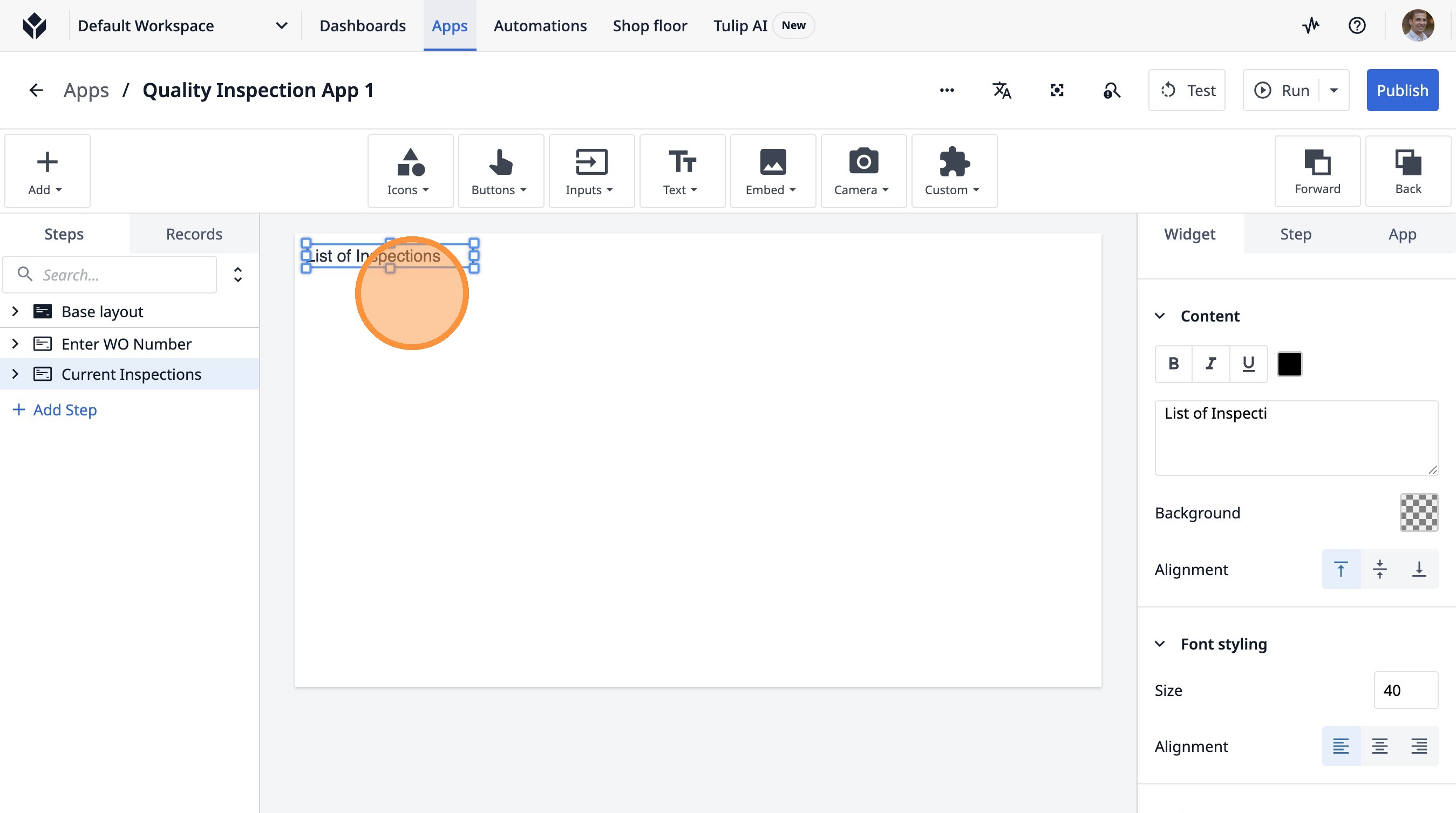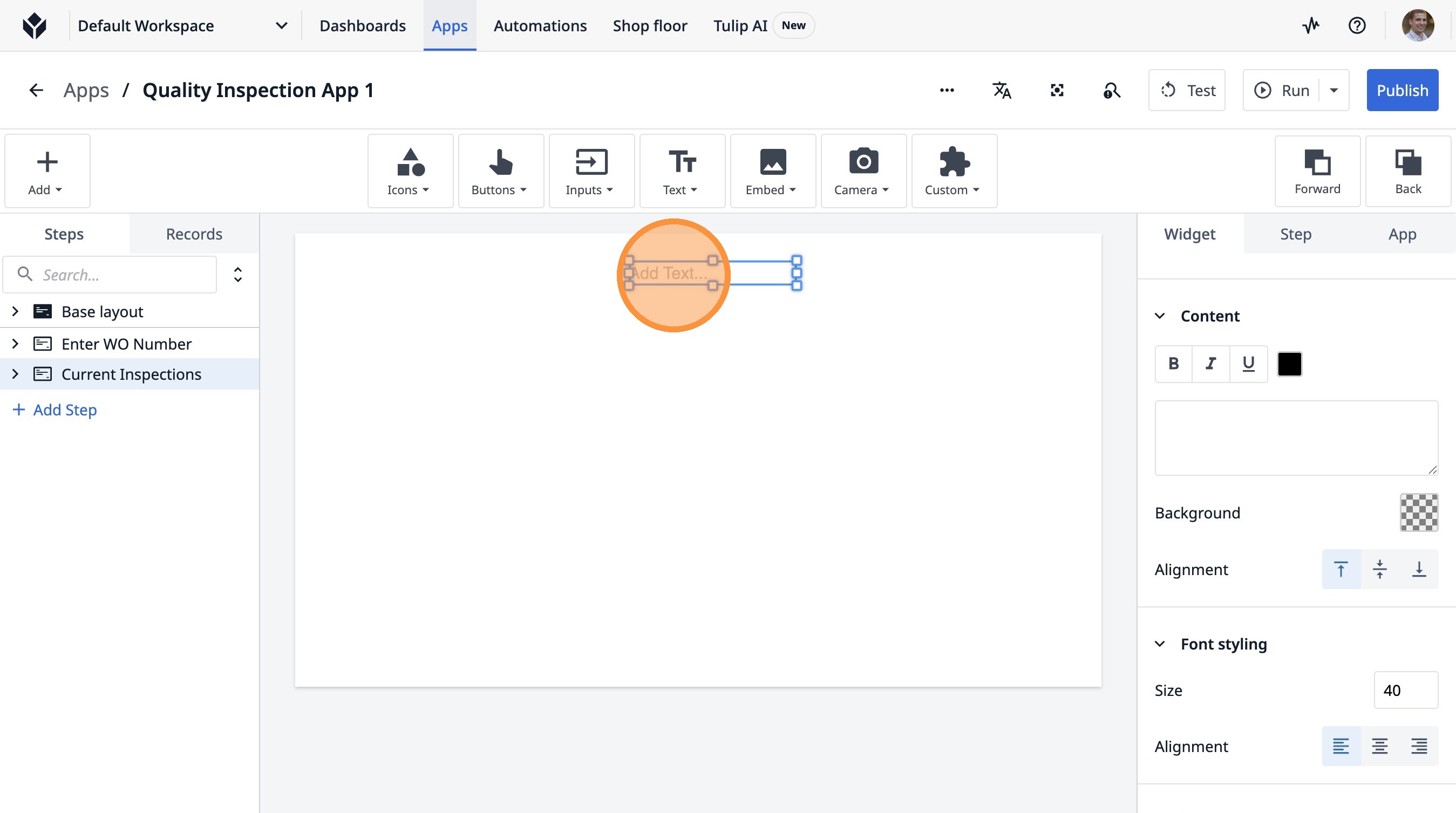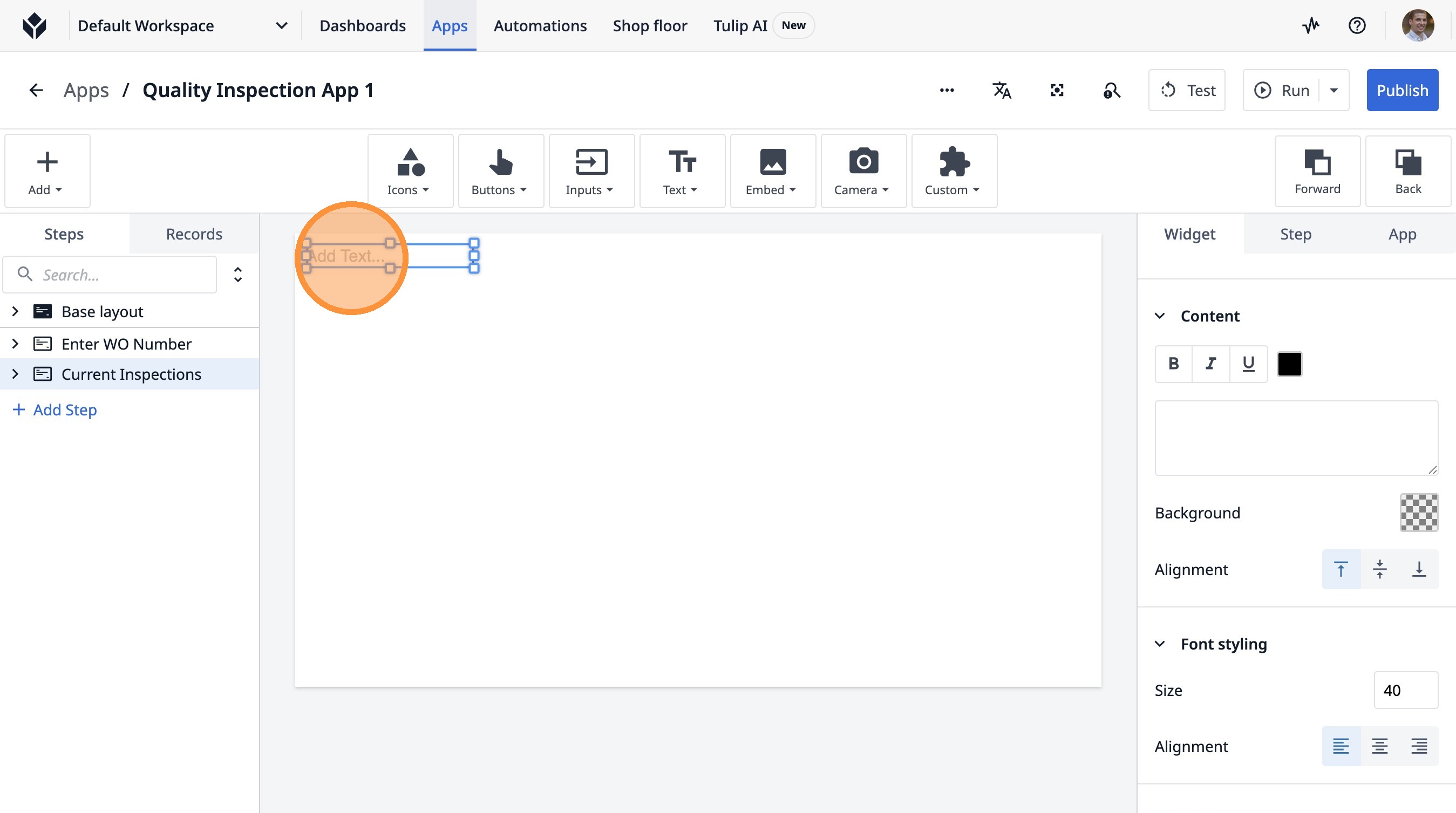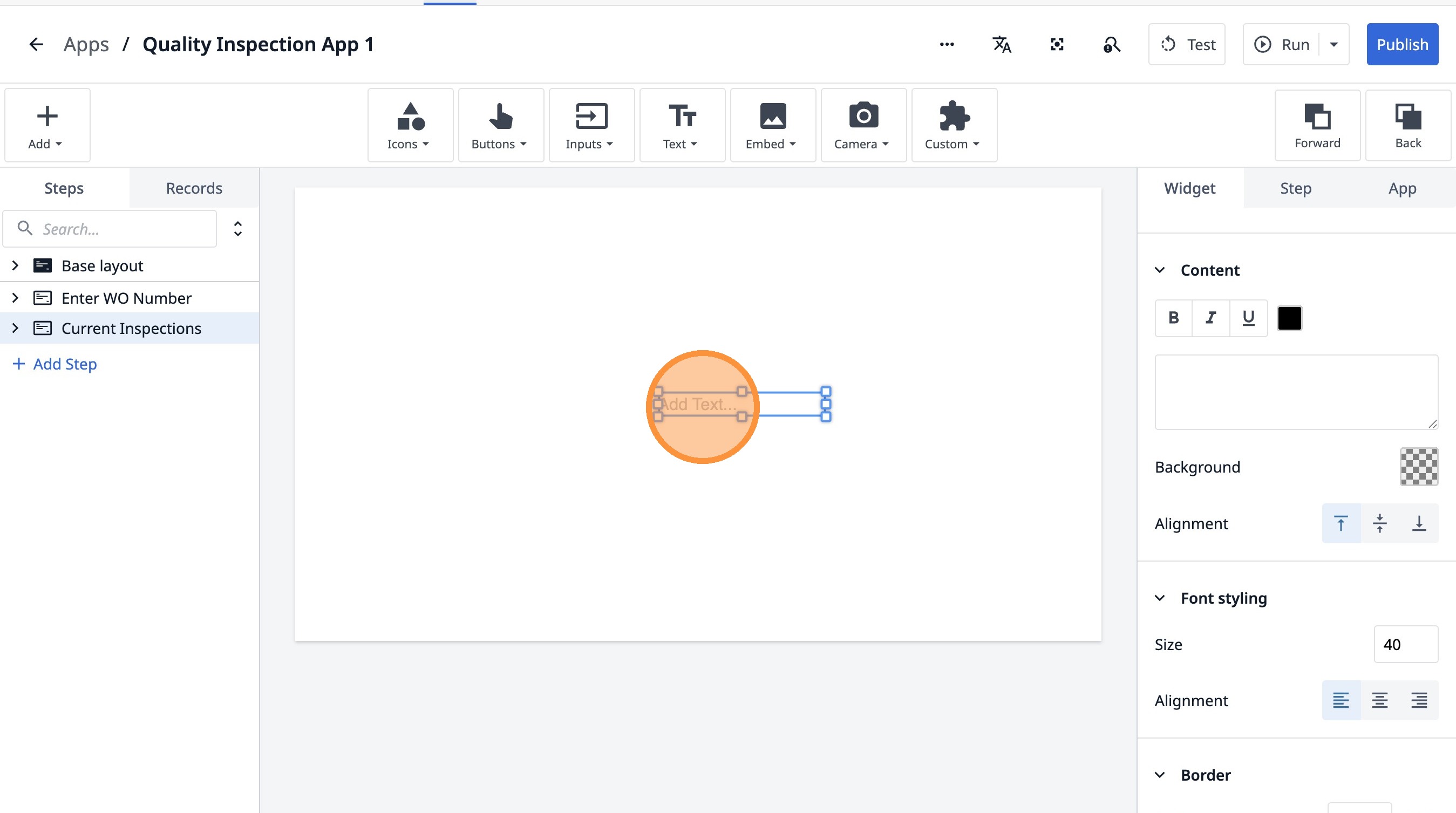 1. Navigate to a step in the App Builder.