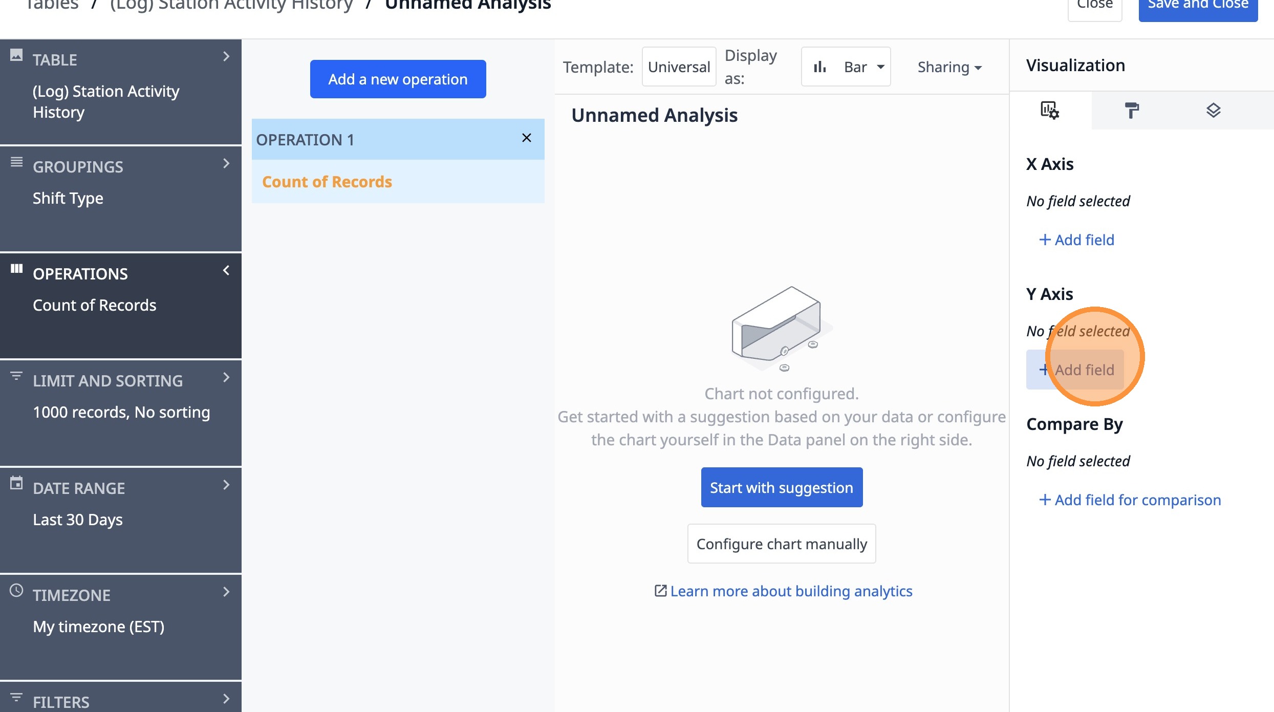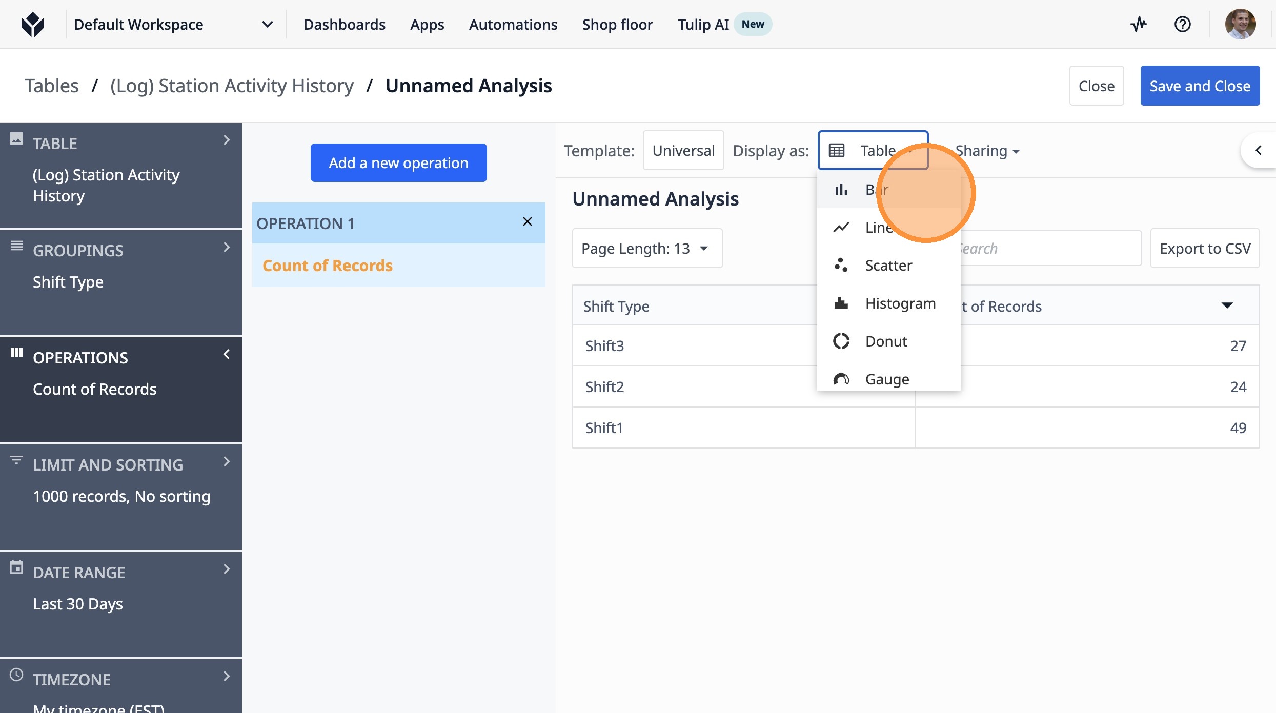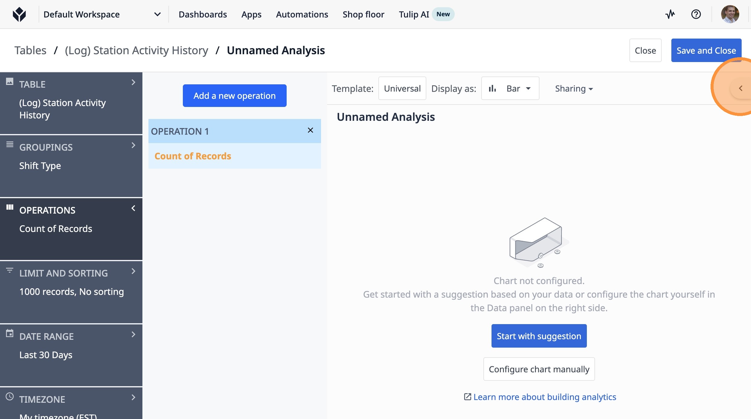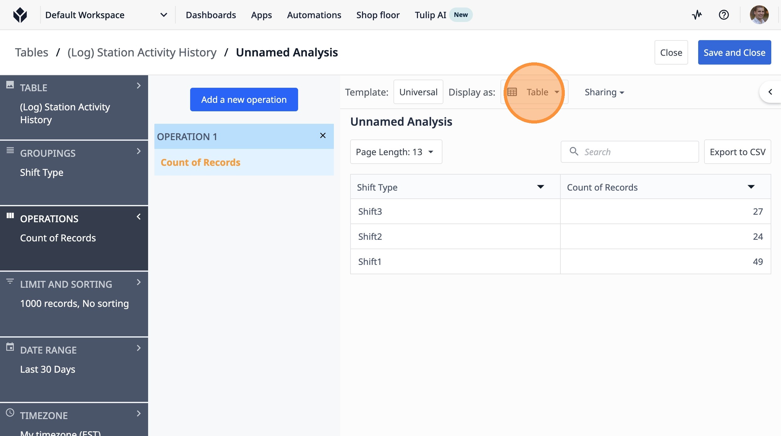 This guide will walk you through setting up a count of completed lots by shift type over the last 7 days.