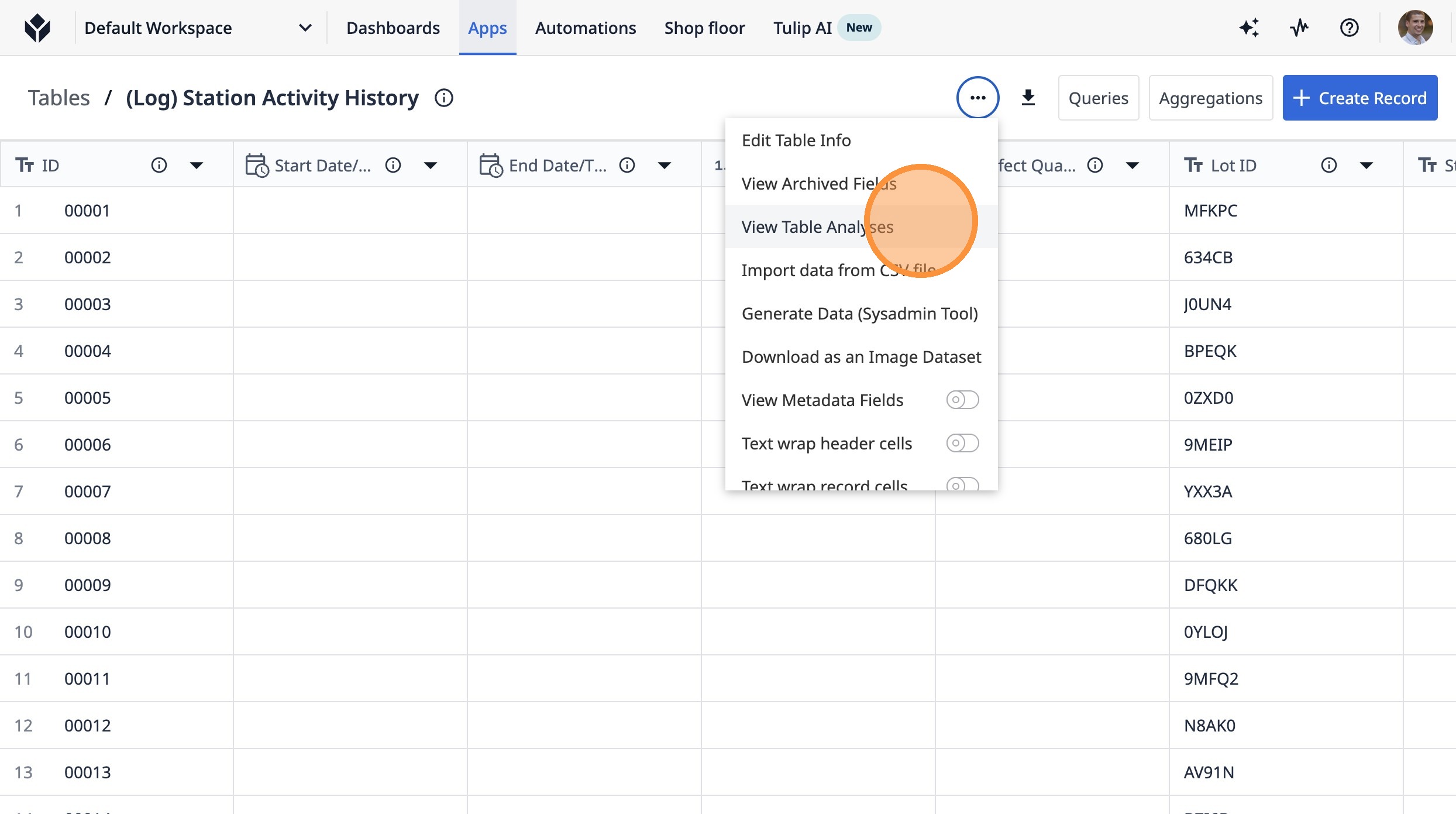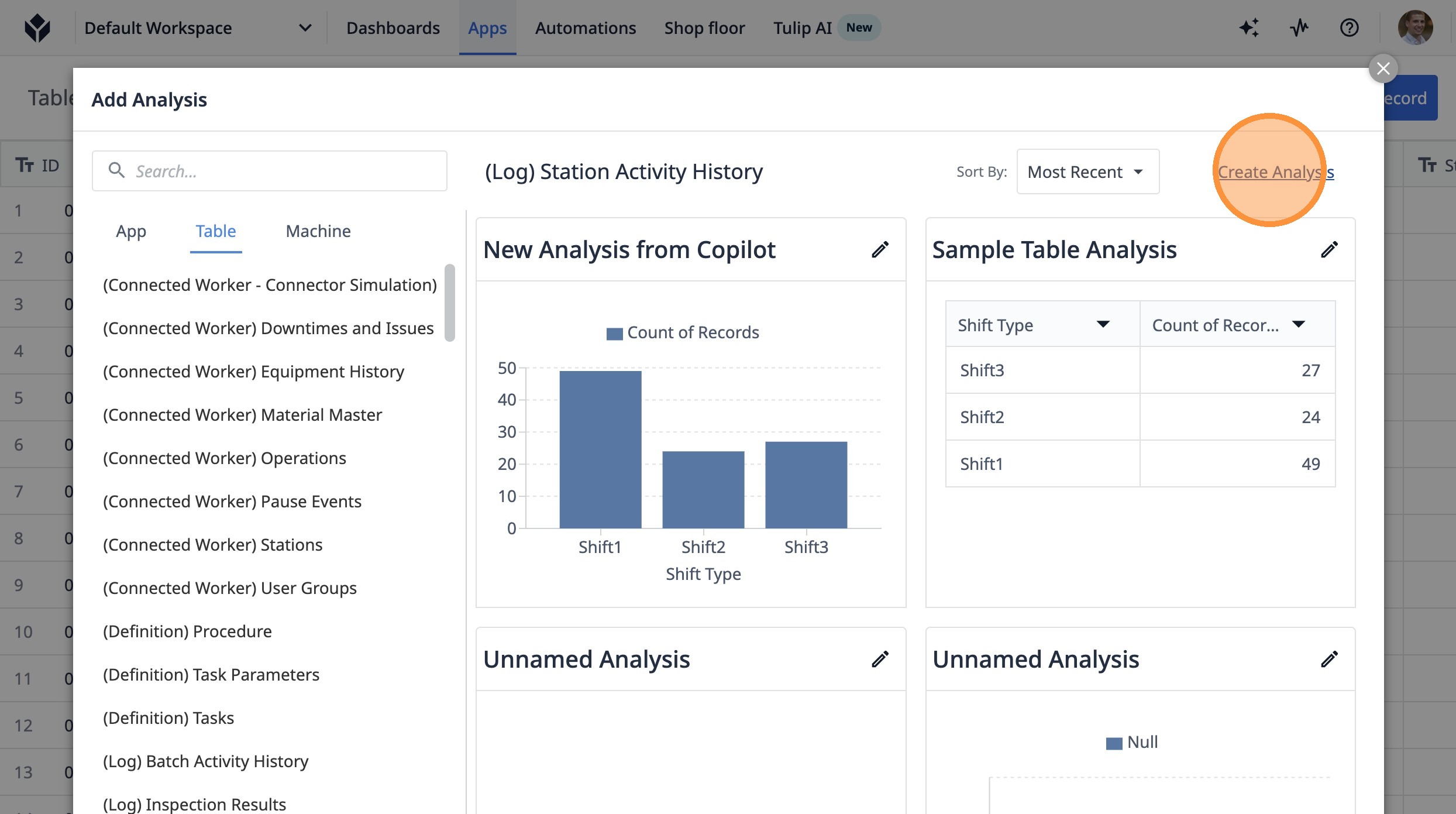 3. Click "View Table Analyses"