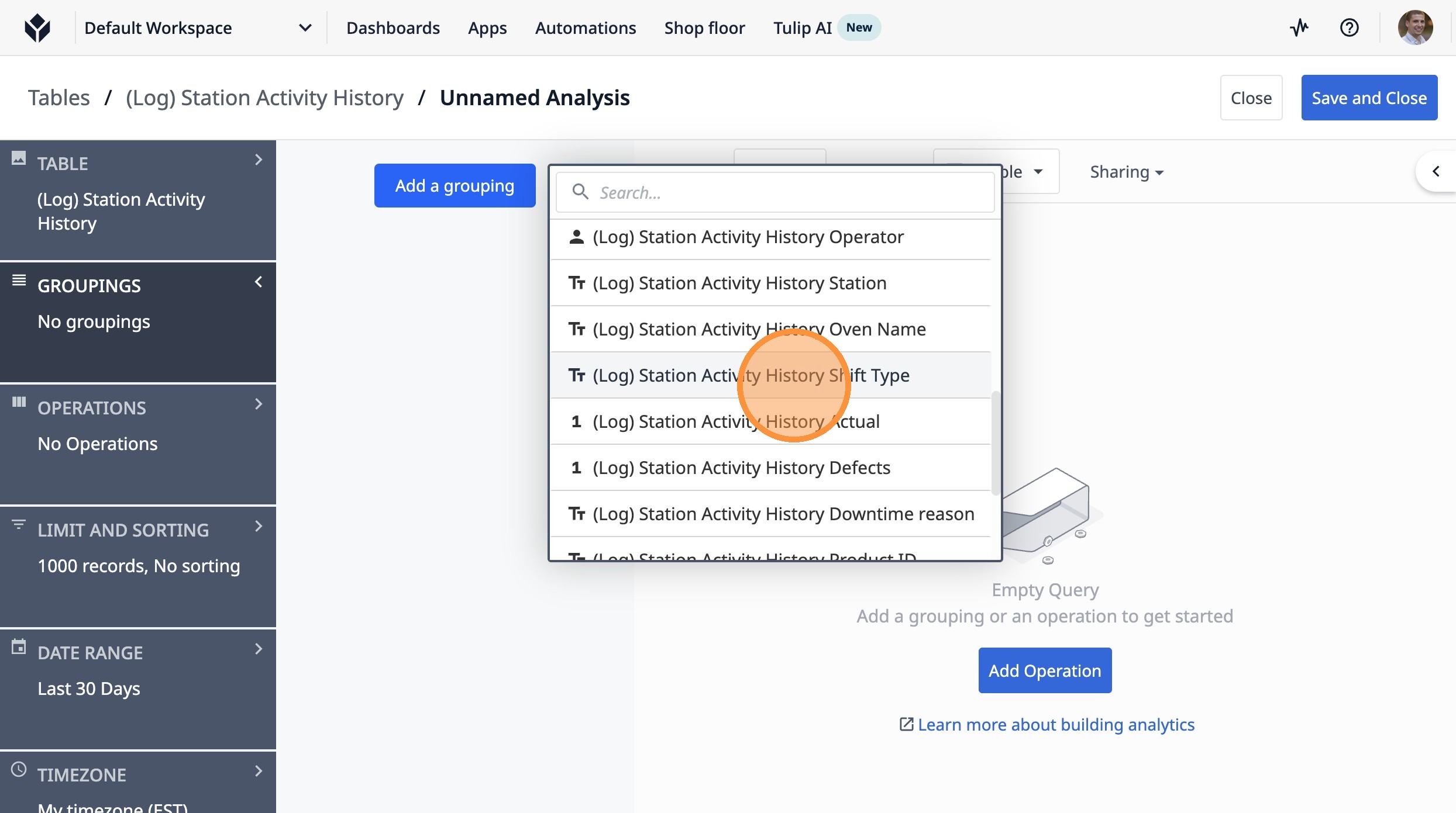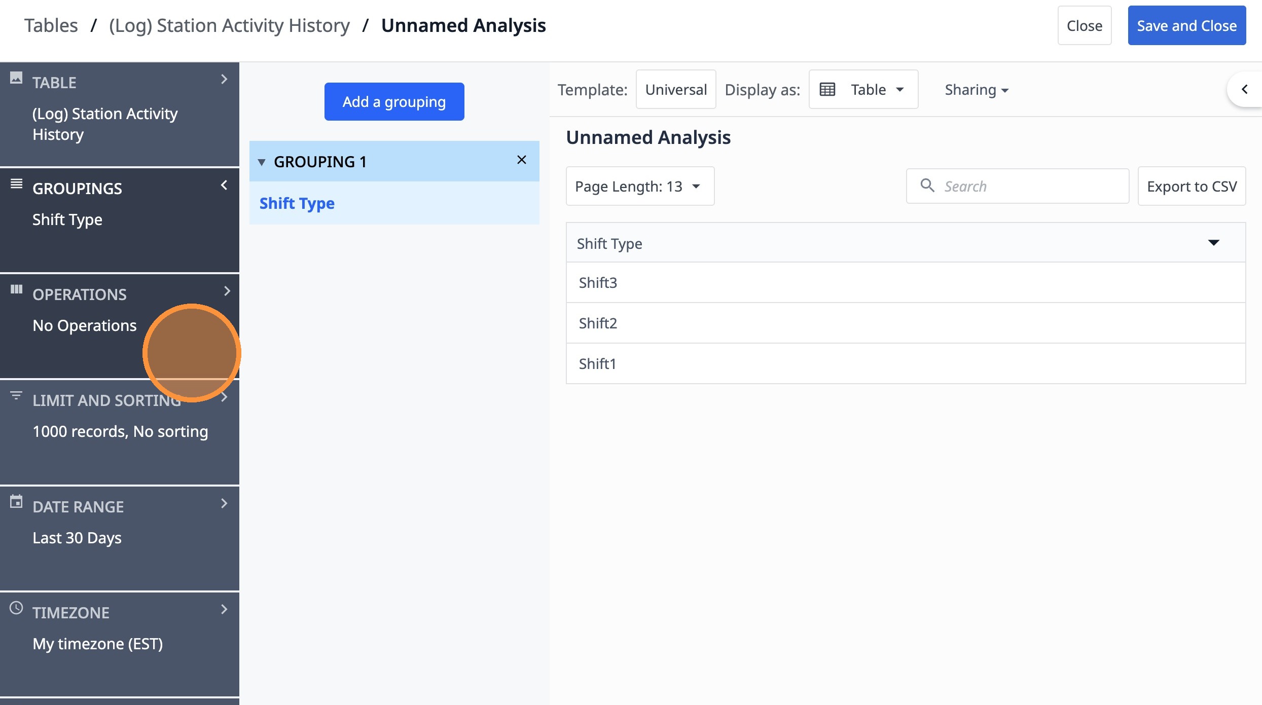 8. Click "(Log) Station Activity History Shift Type"
