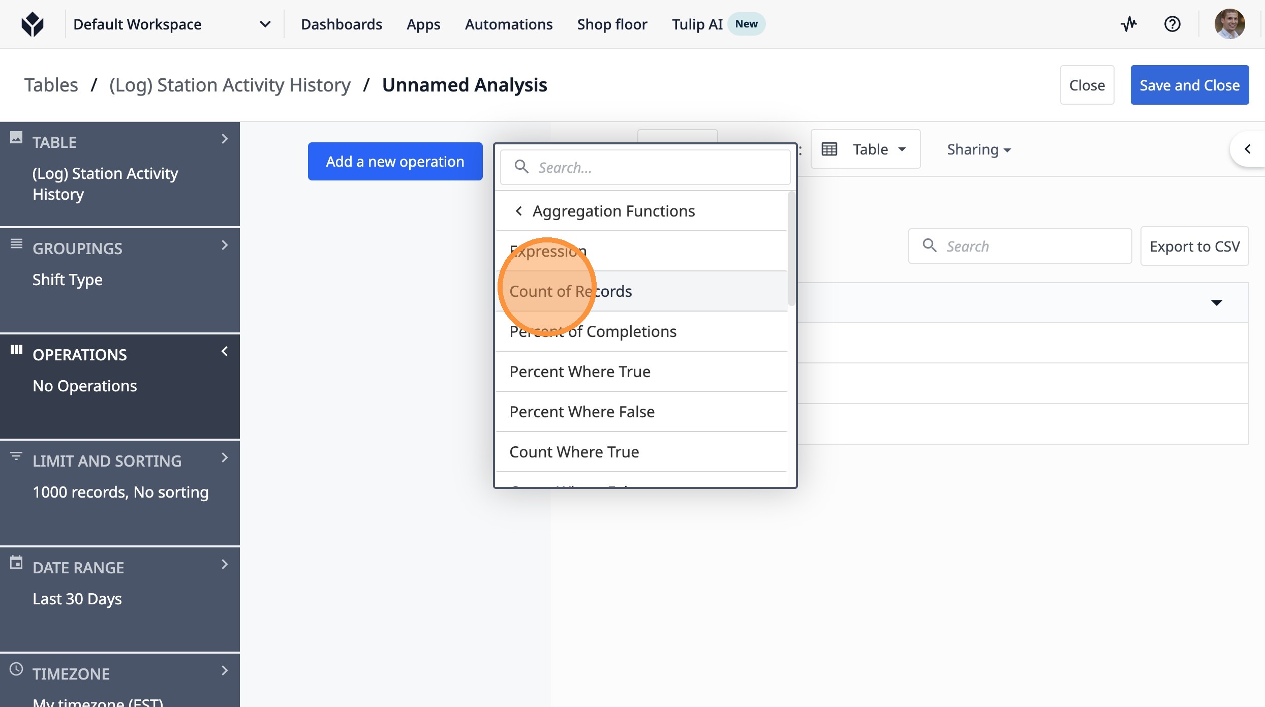 17. Click "Count of Records"
