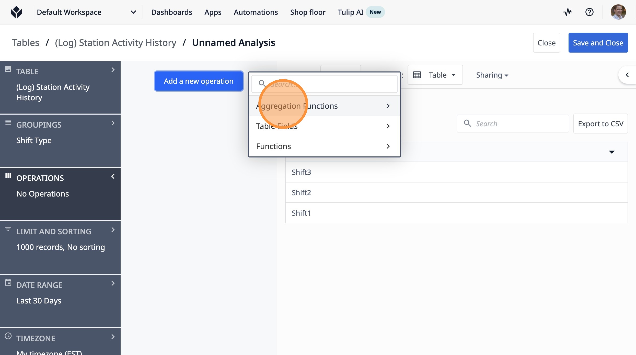 11. Click "Aggregation Functions"