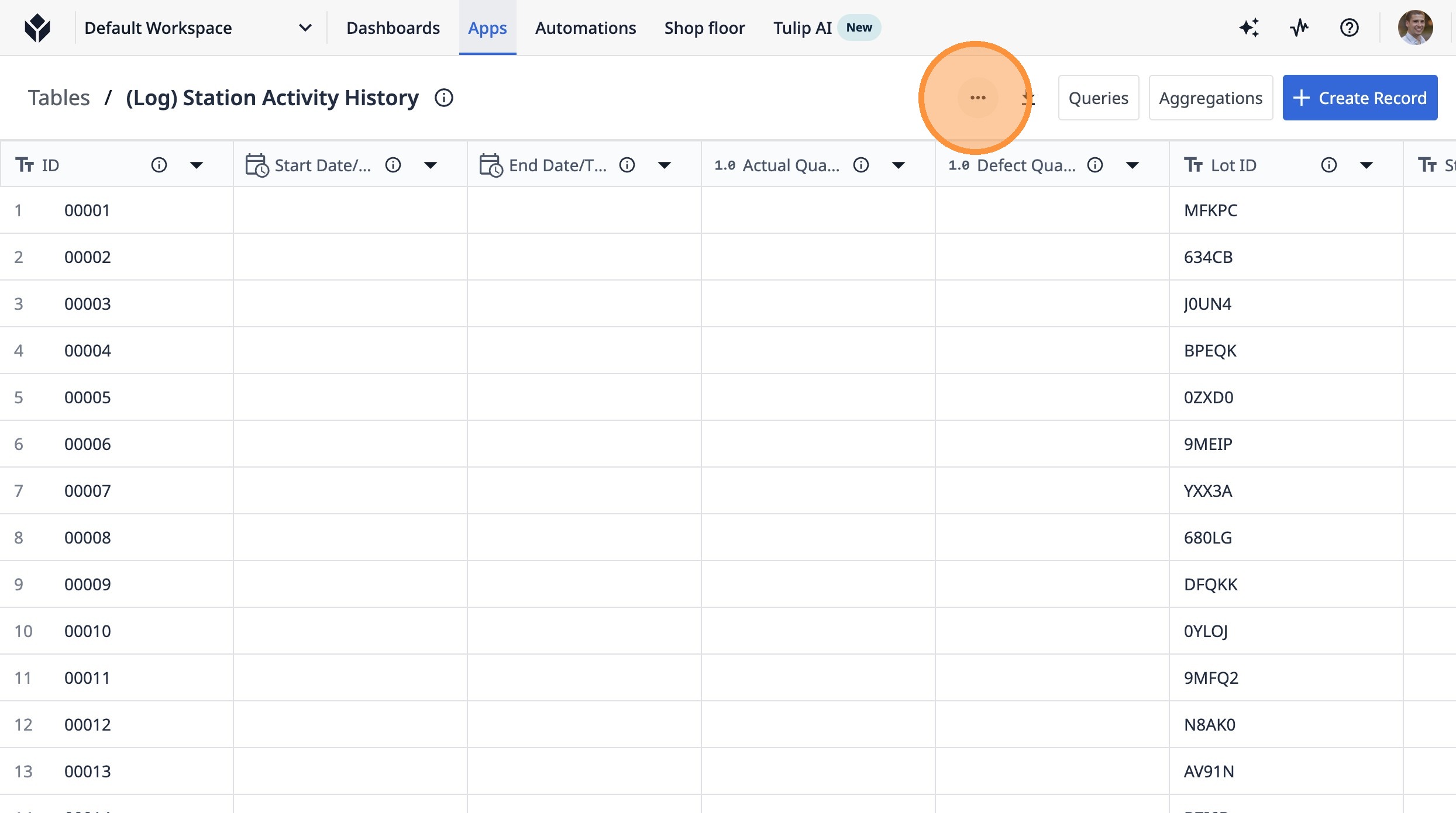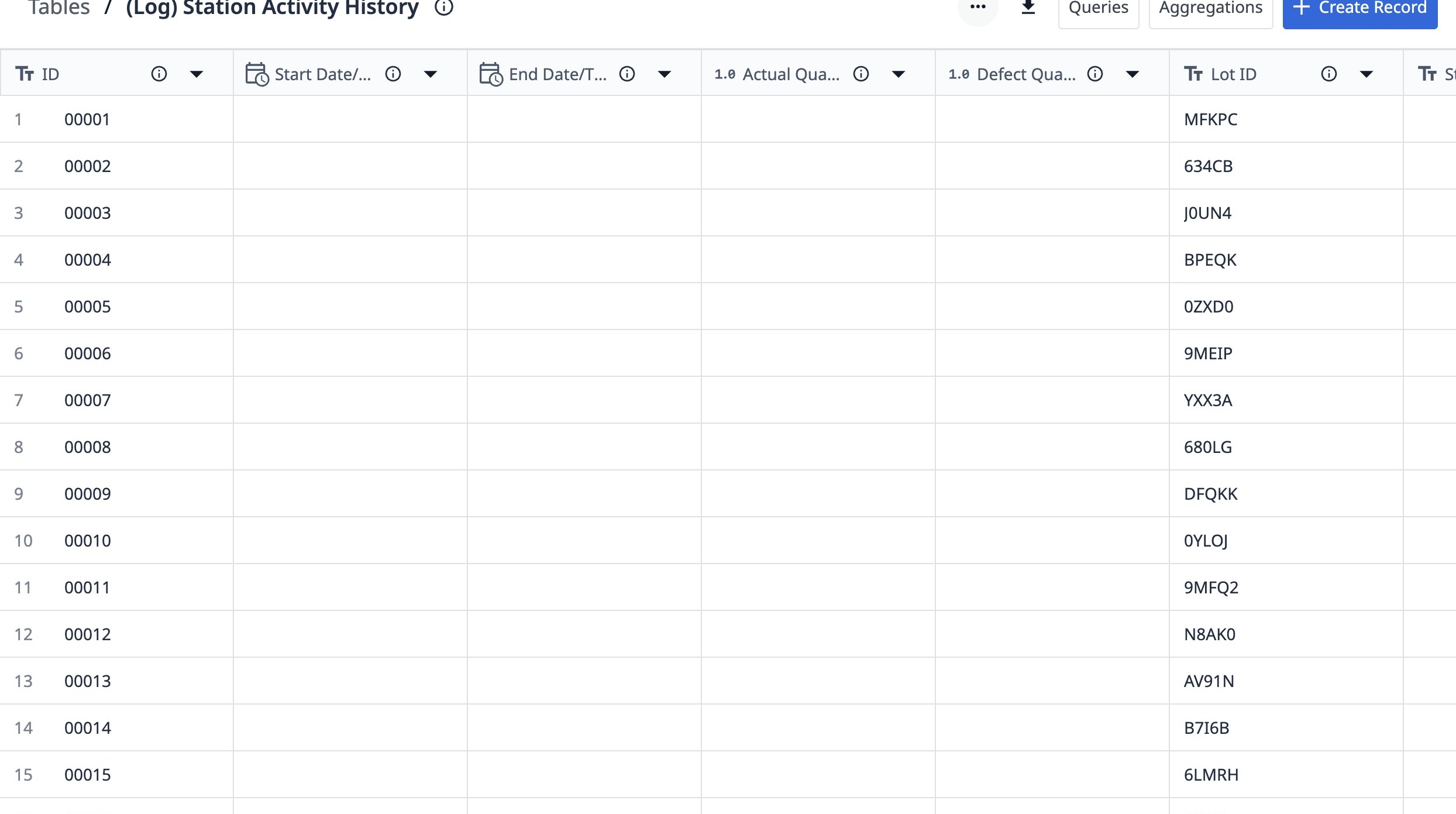 1. Navigate to a station activity history table.